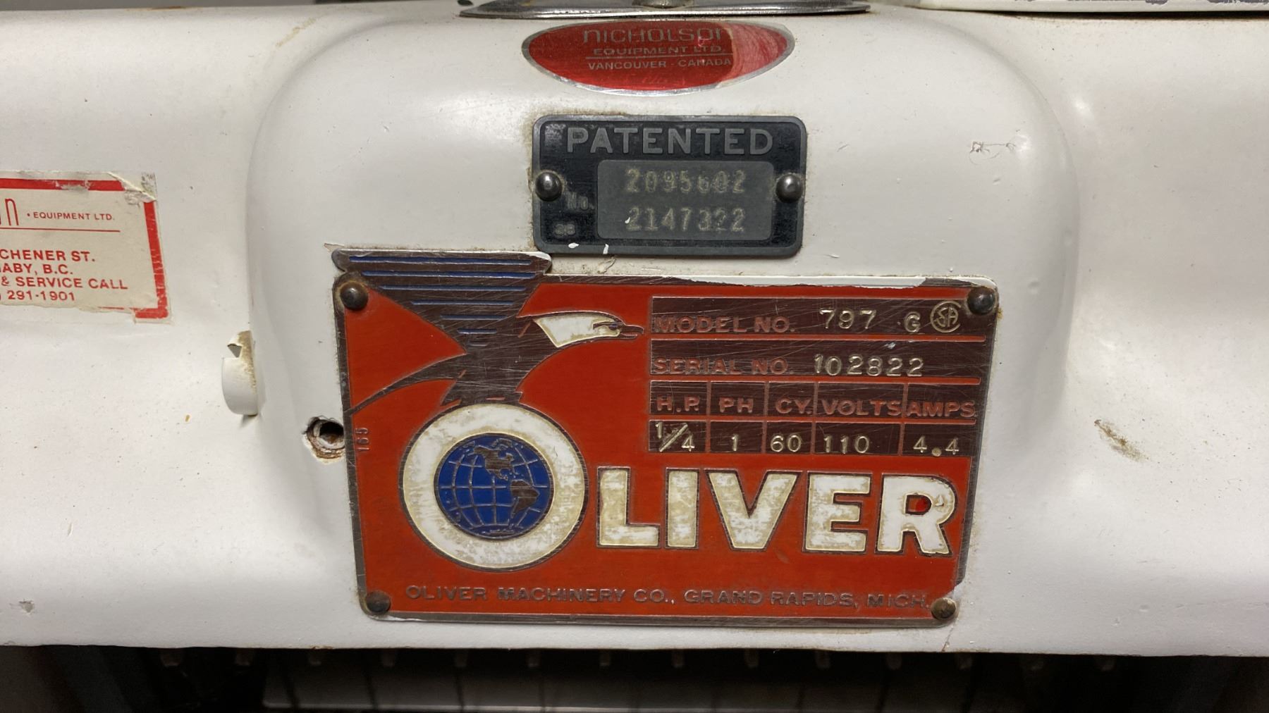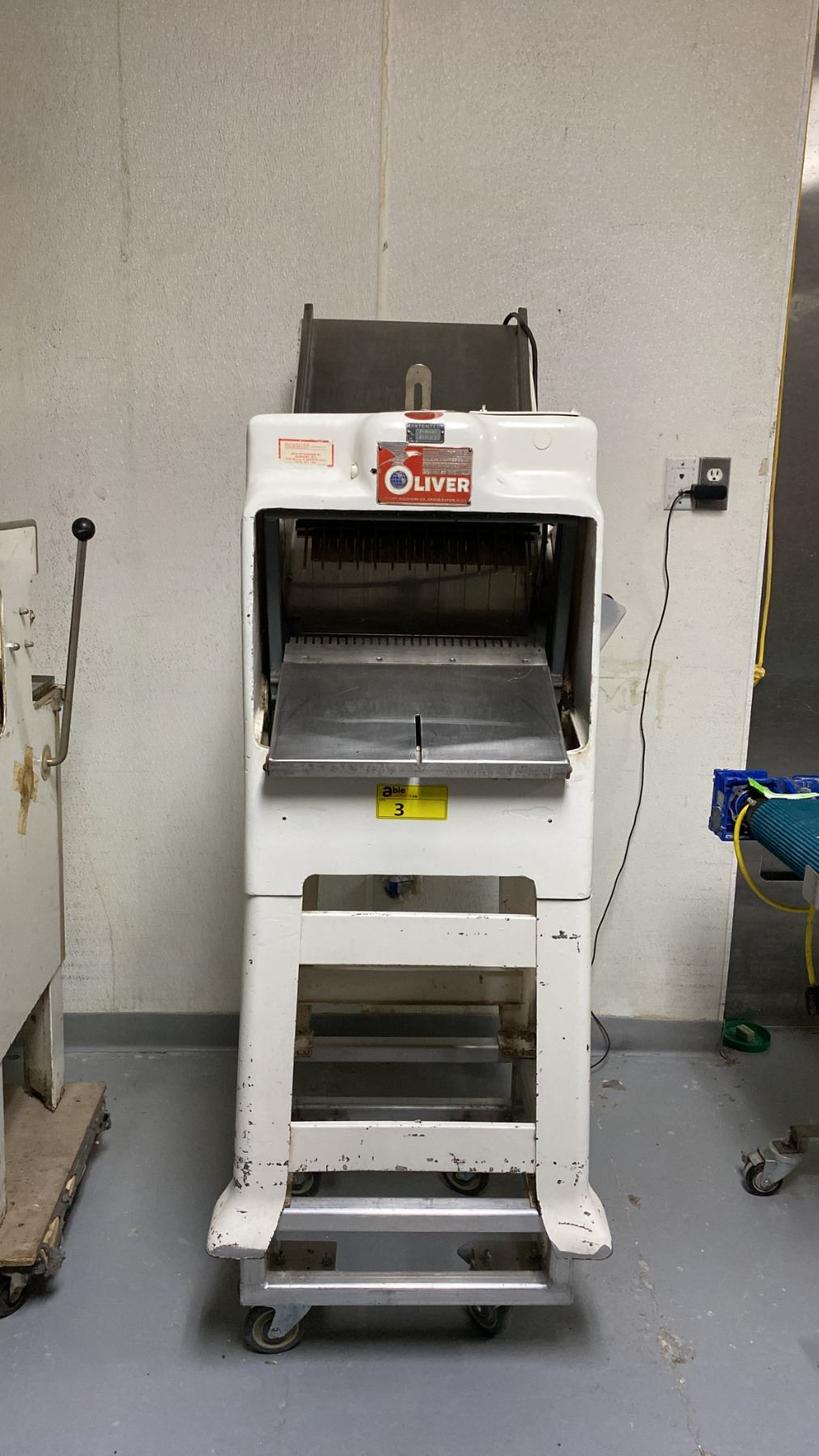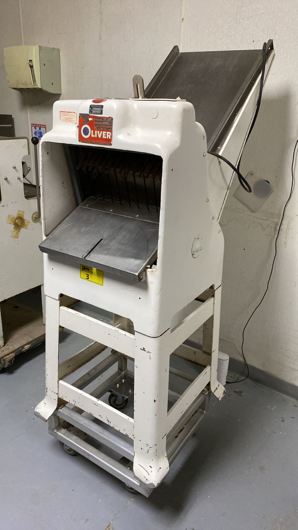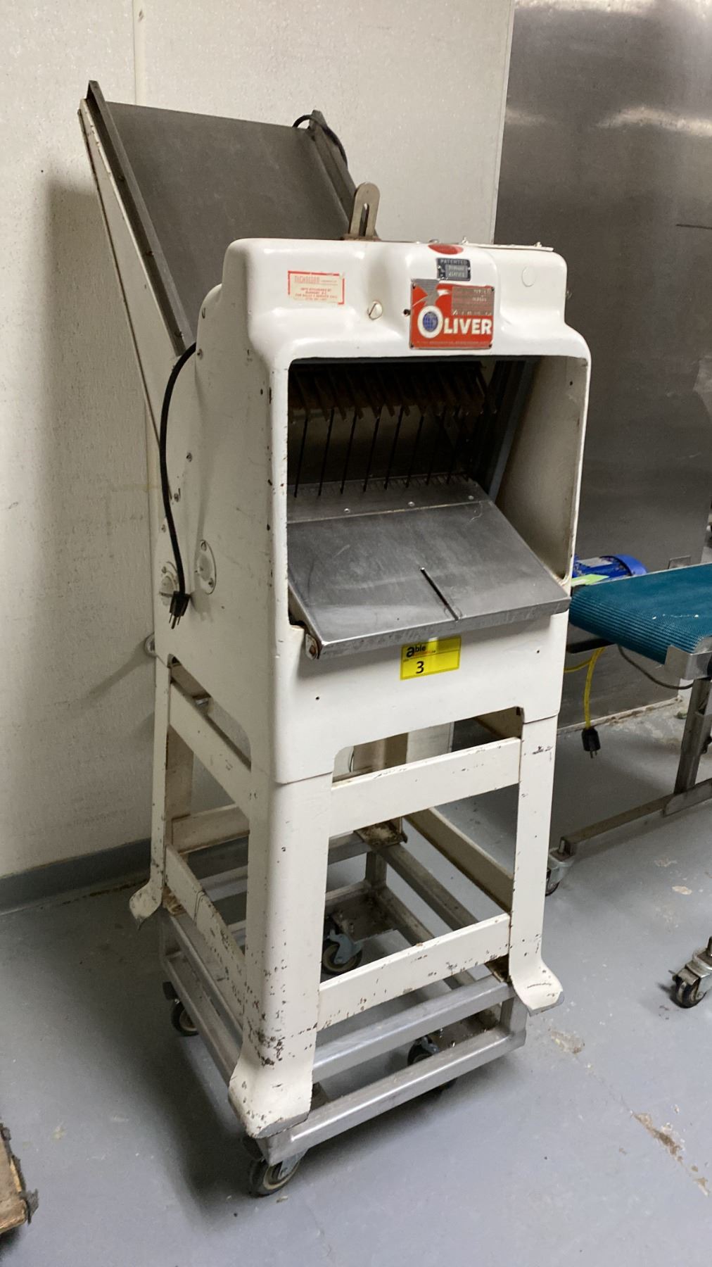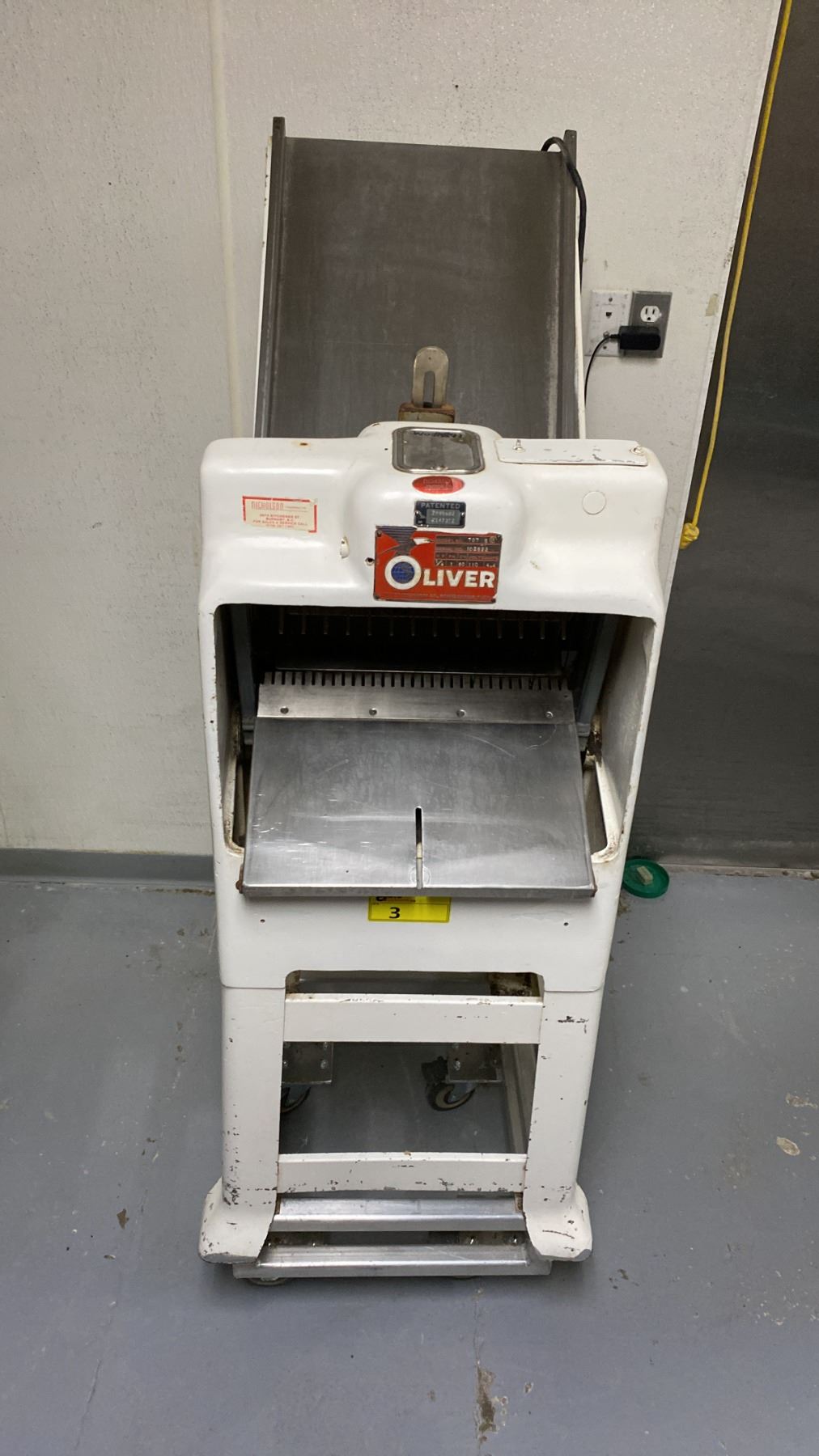 OLIVER 797 COMMERCIAL 1/4 HP 10 BLADE ELECTRIC BREAD SLICER ON MOBILE CART *CART INCLUDED*