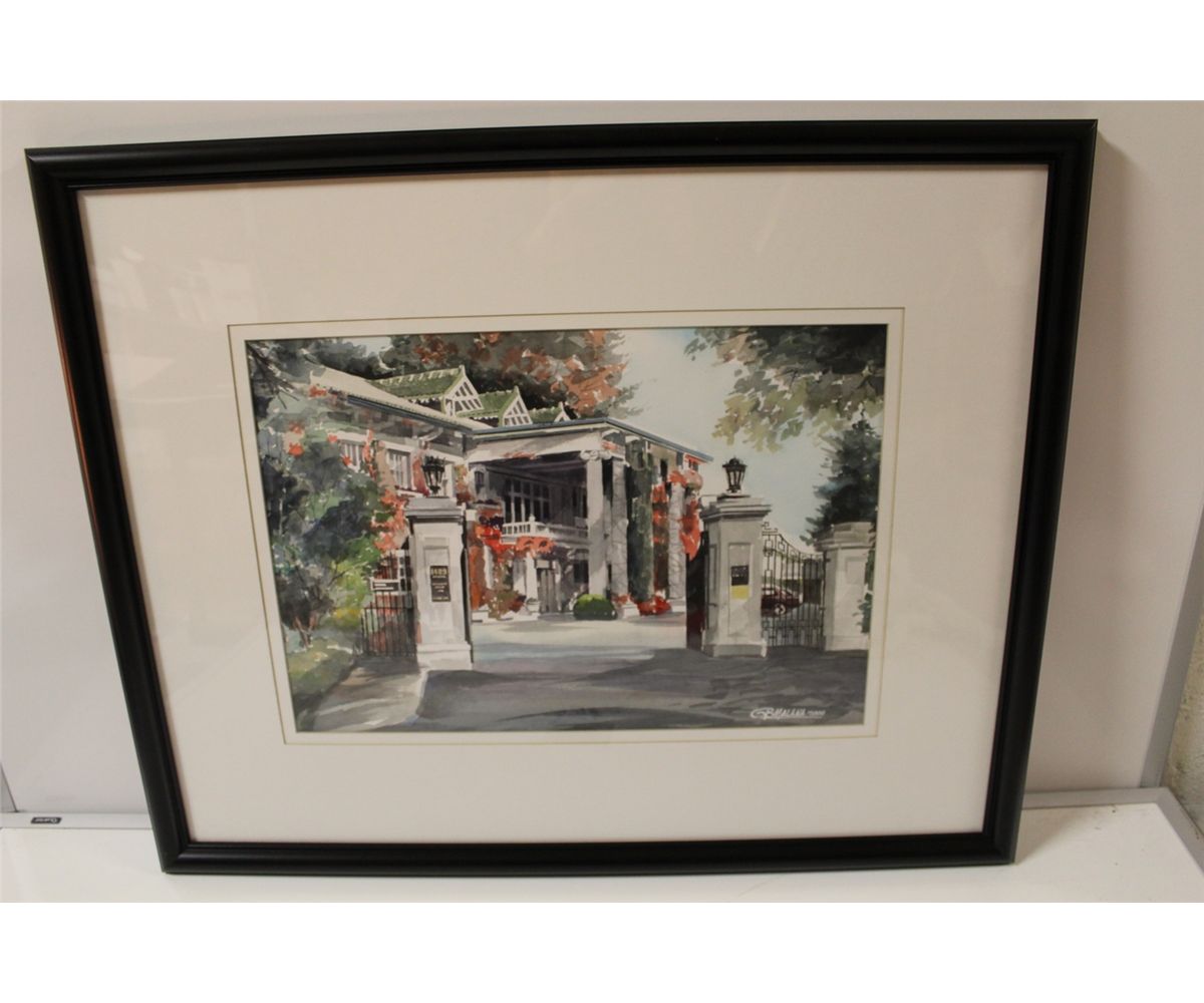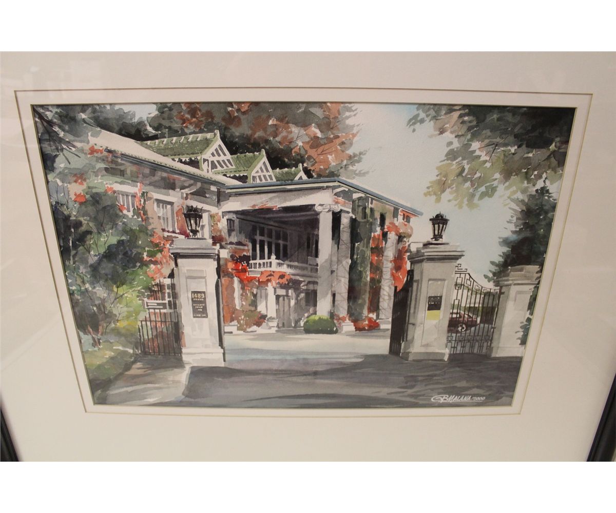 OLIVER B. MALANA 26" X 32" ORIGINAL WATERCOLOUR, "THE FAMOUS HYCROFT MANSION" DATED 2000