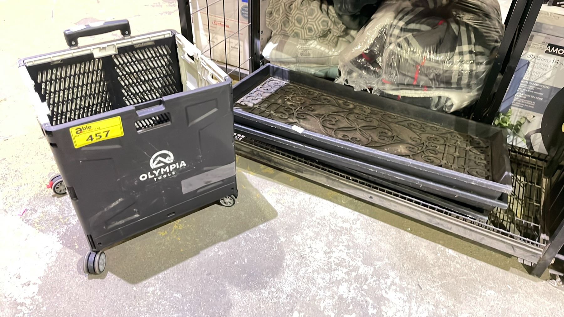 OLYMPIA TOOLS PORTABLE COLLAPSIBLE CART & 3 RUBBER BOOT TRAYS