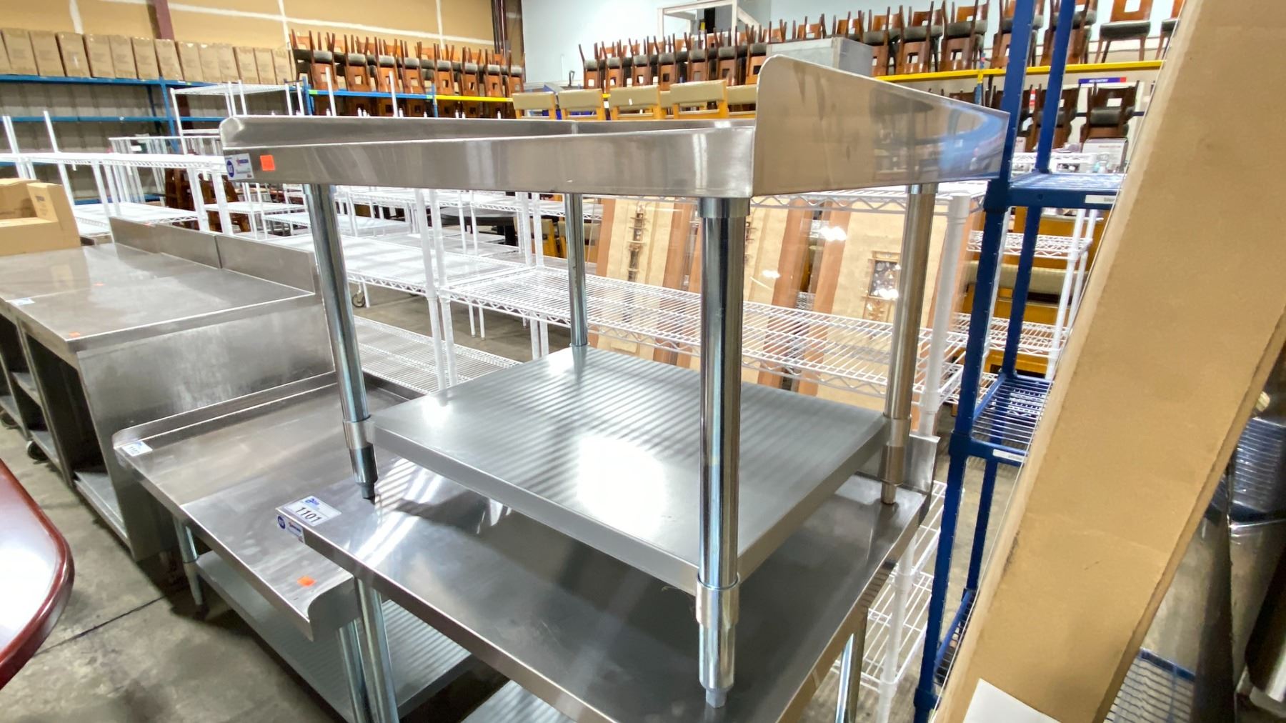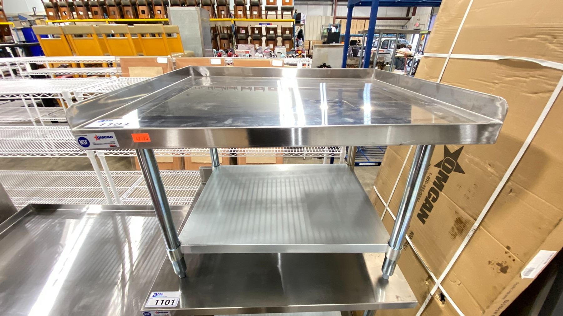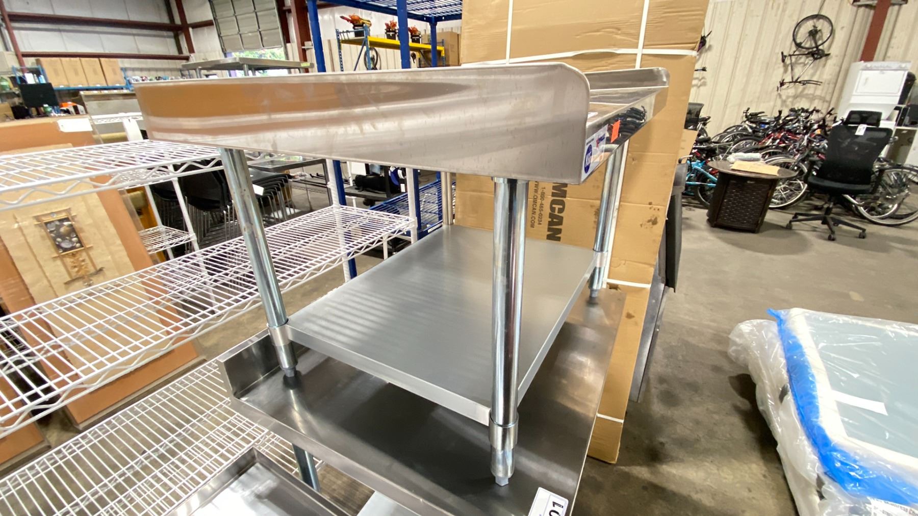 OMCAN STAINLESS STEEL 36"W X 30"D X 24"H COMMERCIAL 2 TIER EQUIPMENT STAND WITH SPILL EDGE