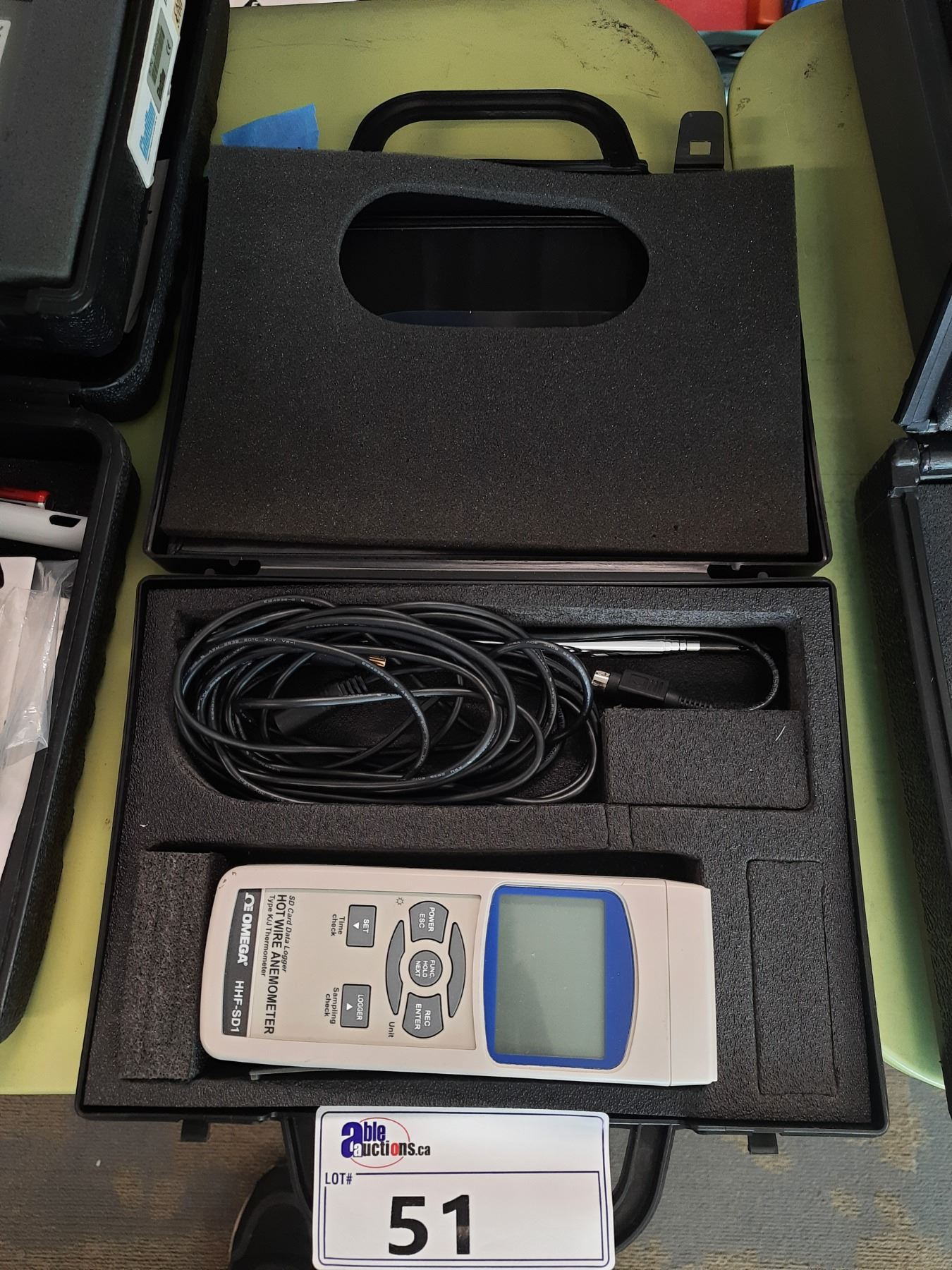 OMEGA HHF-SD1 SD CARD DATA LOGGER HOT WIRE ANEMOMETER KIT WITH CABLES AND CARRY CASE