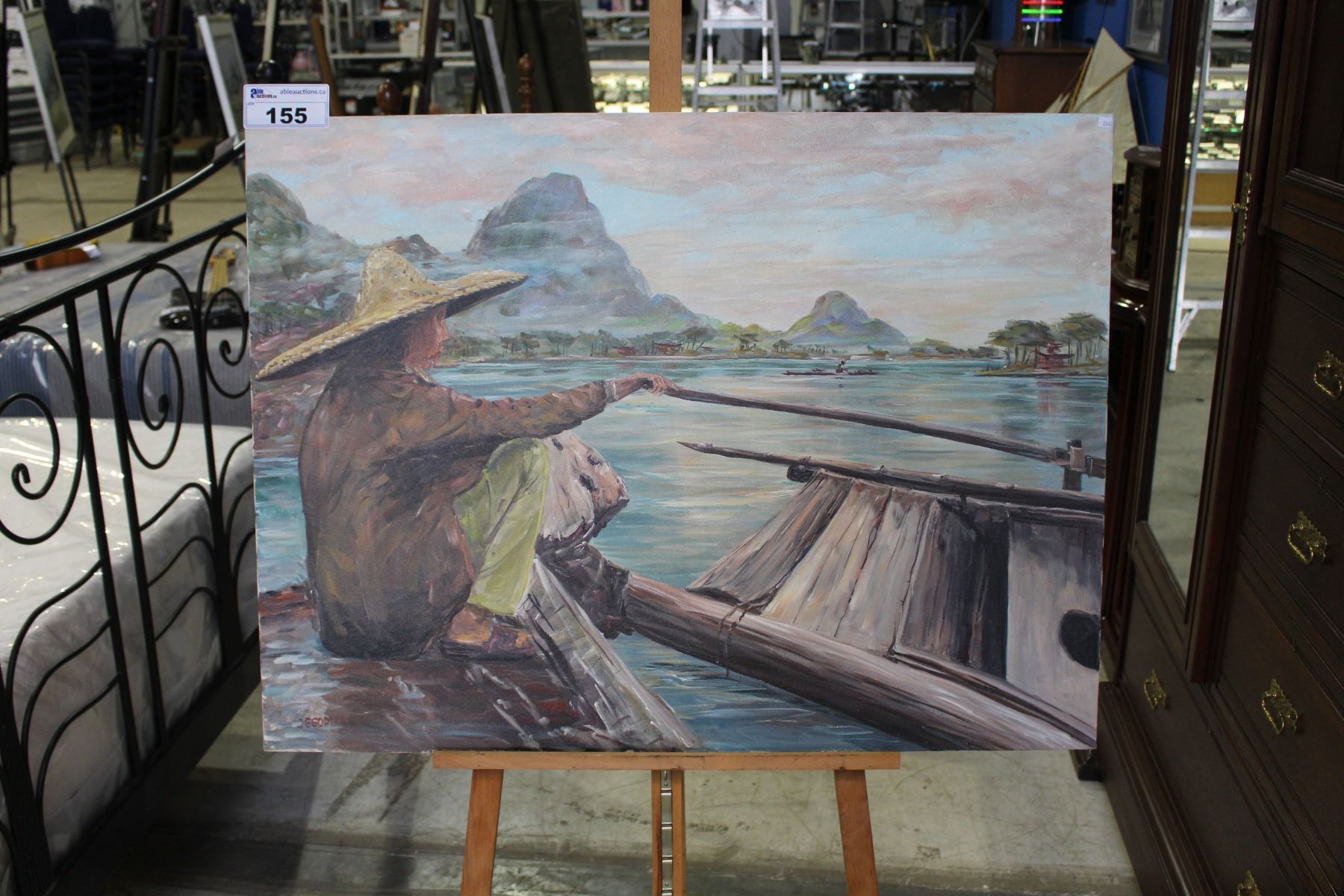 "ON THE RIVER" ACRYLIC PAINTING BY OTTO JEGODTKA 40" X 30"