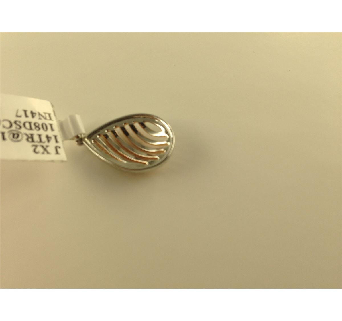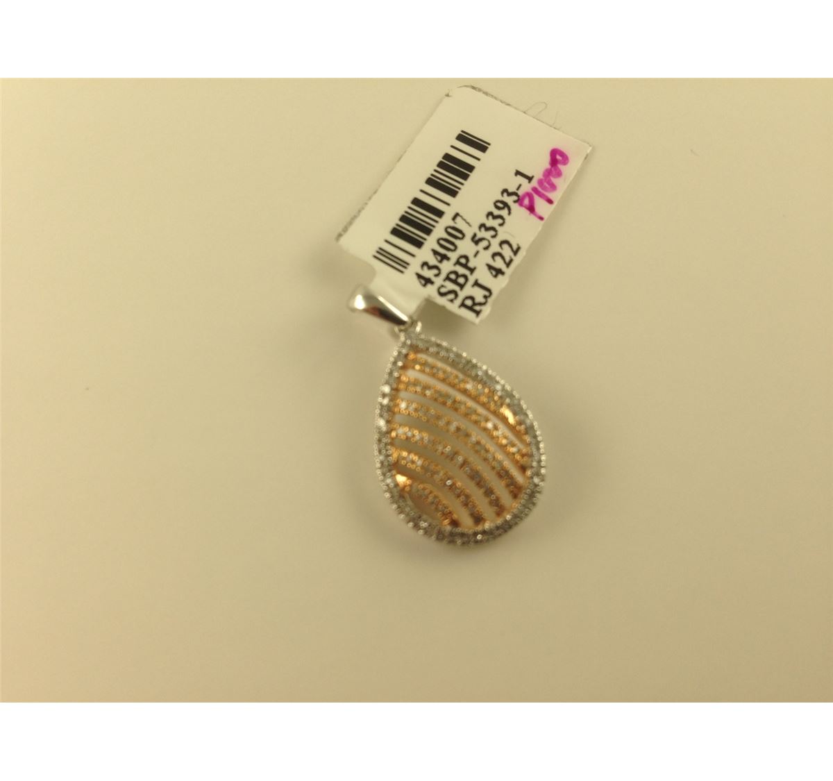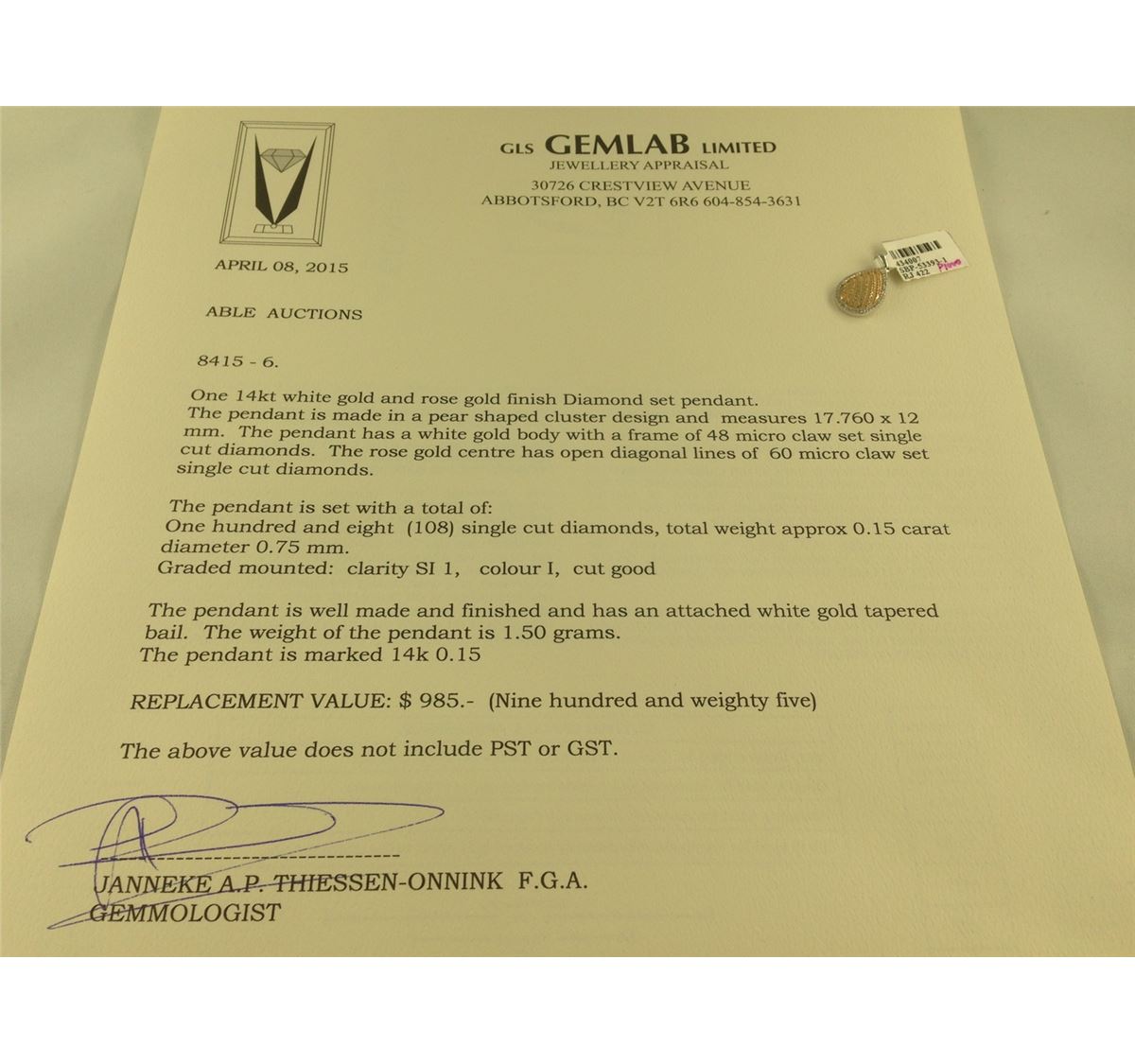 ONE 14KT WHITE GOLD AND ROSE GOLD FINISH DIAMOND SET PENDANT. SET WITH A TOTAL 108 SINGLE CUT DIAMONDS APPROX. 0.15CT, SI-1, I COLOUR WITH REPLACEMENT VALUE $985