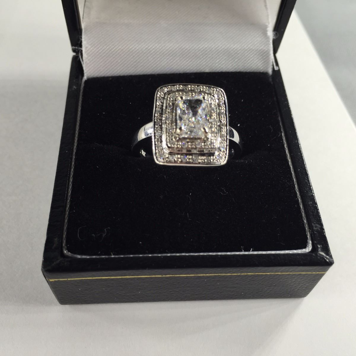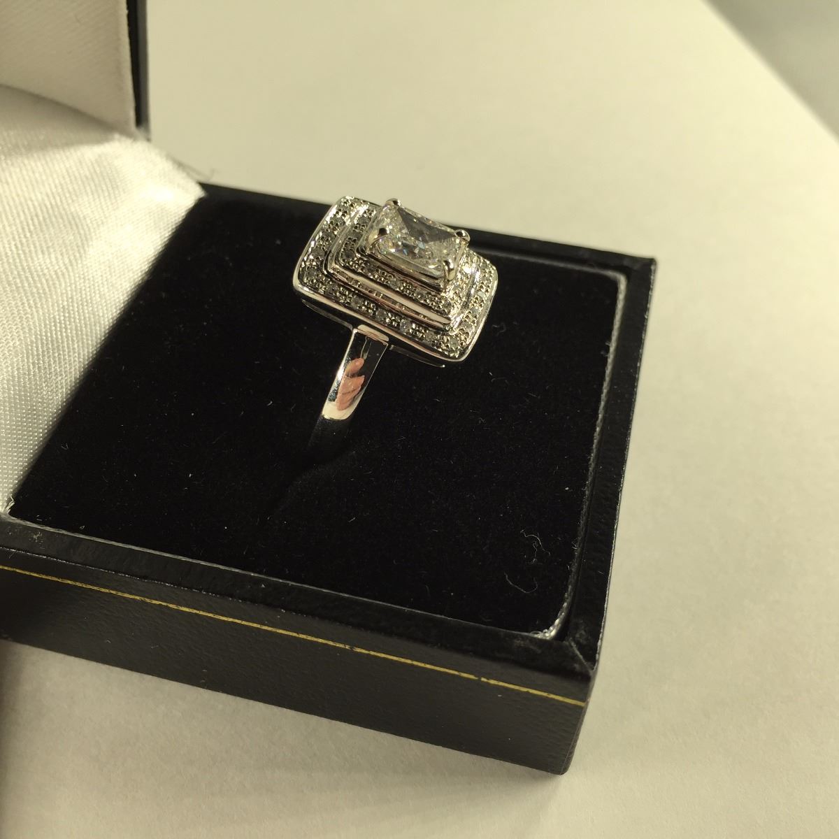 ONE 14KT WHITE GOLD DIAMOND ENGAGEMENT RING, SET WITH ONE 1.02CT, SI-2, G COLOUR GIA CERTIFIED RADIANT CUT DIAMOND AND 36 SINGLE CUT DIAMONDS. REPLACEMENT VALUE $12,000