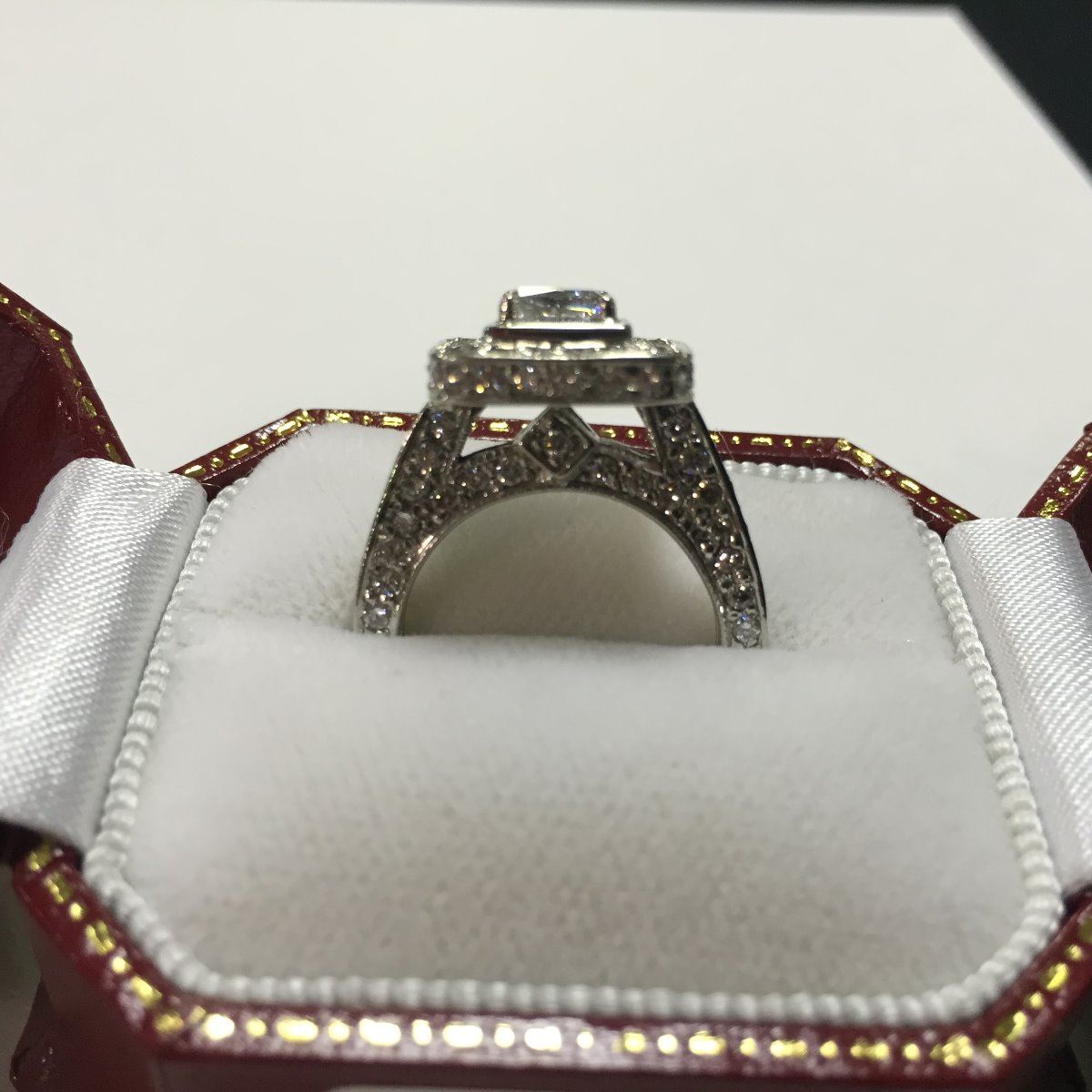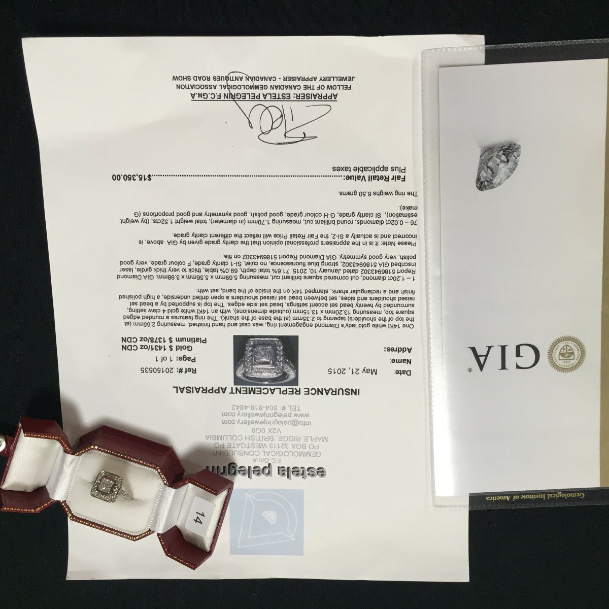 ONE 14KT WHITE GOLD LADIES DIAMOND ENGAGEMENT RING, SET WITH ONE 1.20 CT SQUARE BRILLIANT CUT DIAMOND, SI-1, F COLOUR, GIA CERT 5186943302 ALSO 76- 0.02CT SINGLE CUT DIAMONDS, SI, G-H COLOUR. GEMMOLOGIST REPLACEMENT VALUE $15,350