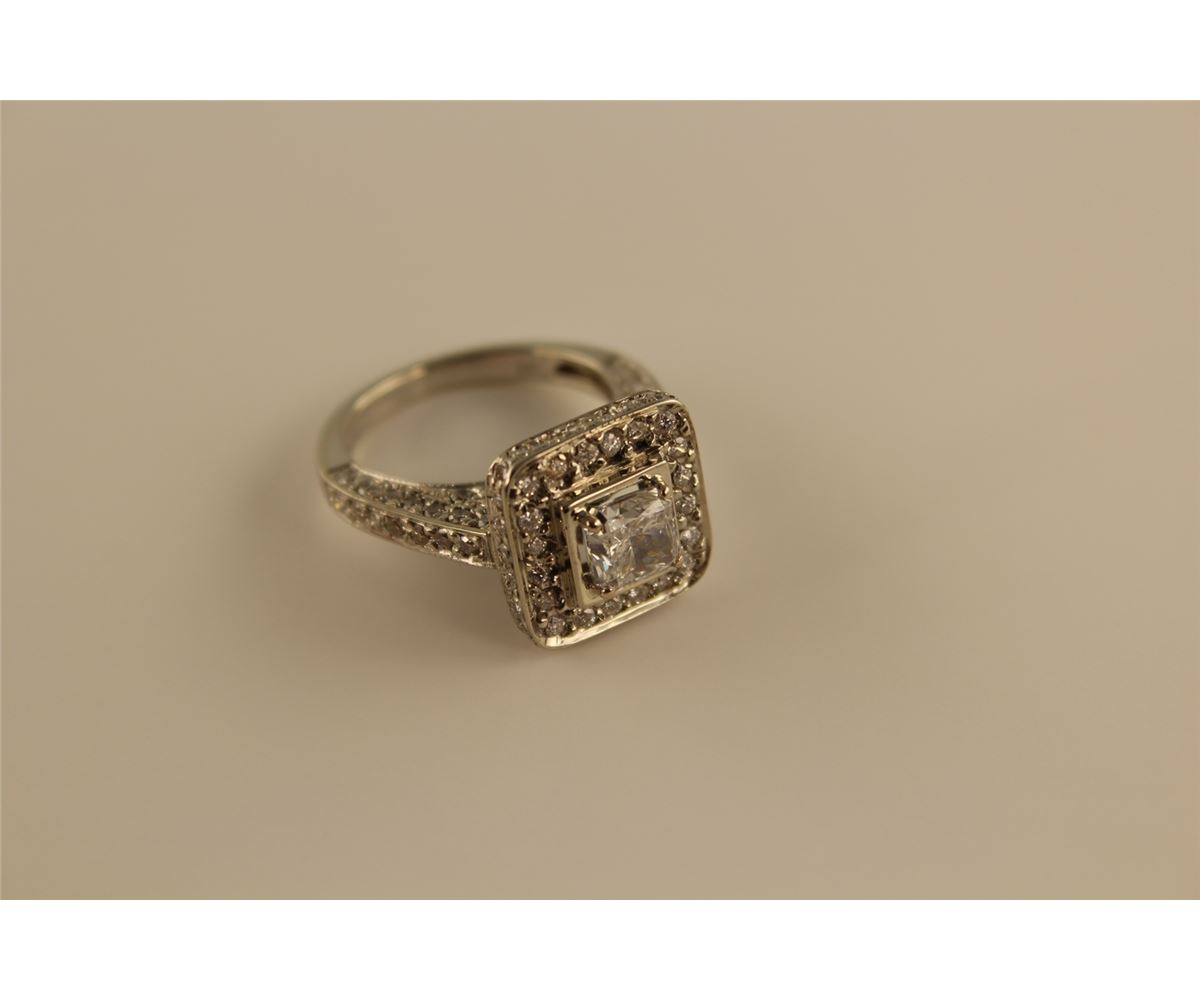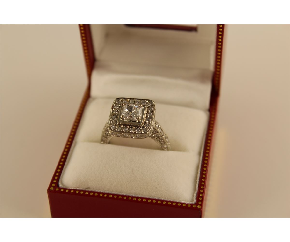 ONE 14KT WHITE GOLD LADIES DIAMOND ENGAGEMENT RING, SET WITH ONE 1.20CT DIAMOND SQUARE BRILLIANT CUT, SI-1, F COLOUR GIA REPORT 5186943302 AND 101 ROUND BRILLIANT CUT DIAMONDS APPROX. 1.75CTS TOTAL DIAMOND WEIGHT APPROX. 2.95CTS REPLACEMENT VALUE $21,075