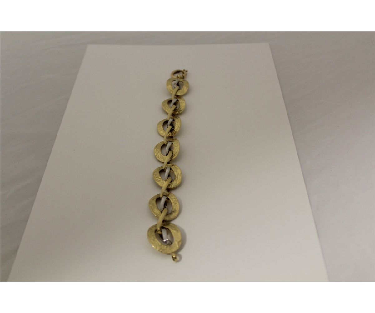 ONE 14KT YELLOW GOLD AND WHITE GOLD ITALIAN MADE MODERN LINK STYLE BRACELET. THE BRACELET WEIGHS 13.0 GRAM AND IS 20 CM LONG. WELL MADE AND MARKED 14K. INCL. GEMMOLOGIST APPRAISAL $1750