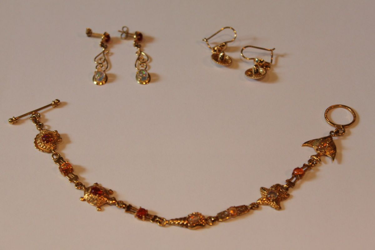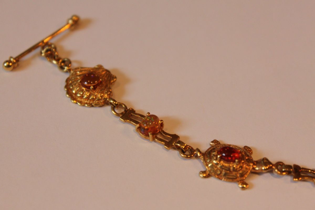 bracelet.  The bracelet consists of nine links, of shells, a sea turtle. starfish and fish, with curved bars links in between.  The links are joined together by small jumprings and the bracelet is four claw set with a total of:
