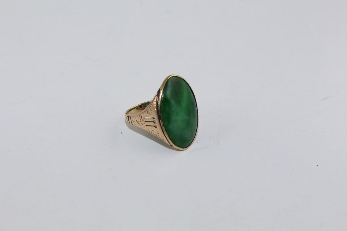 ONE 14KT YELLOW GOLD VINTAGE NATURAL BURMESE JADEITE LADIES DRESS RING BEZEL SET WITH ONE NATURAL BURMESE JADEITE (JADEITE IS LOOSE IN SETTING) REPLACEMENT VALUE $1,400
