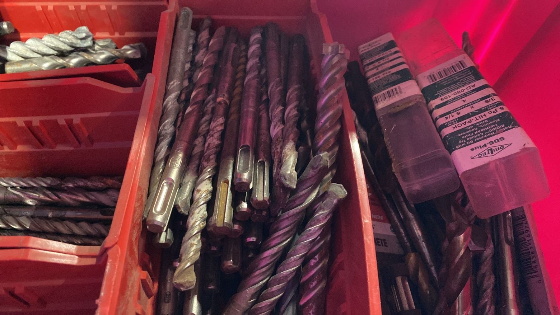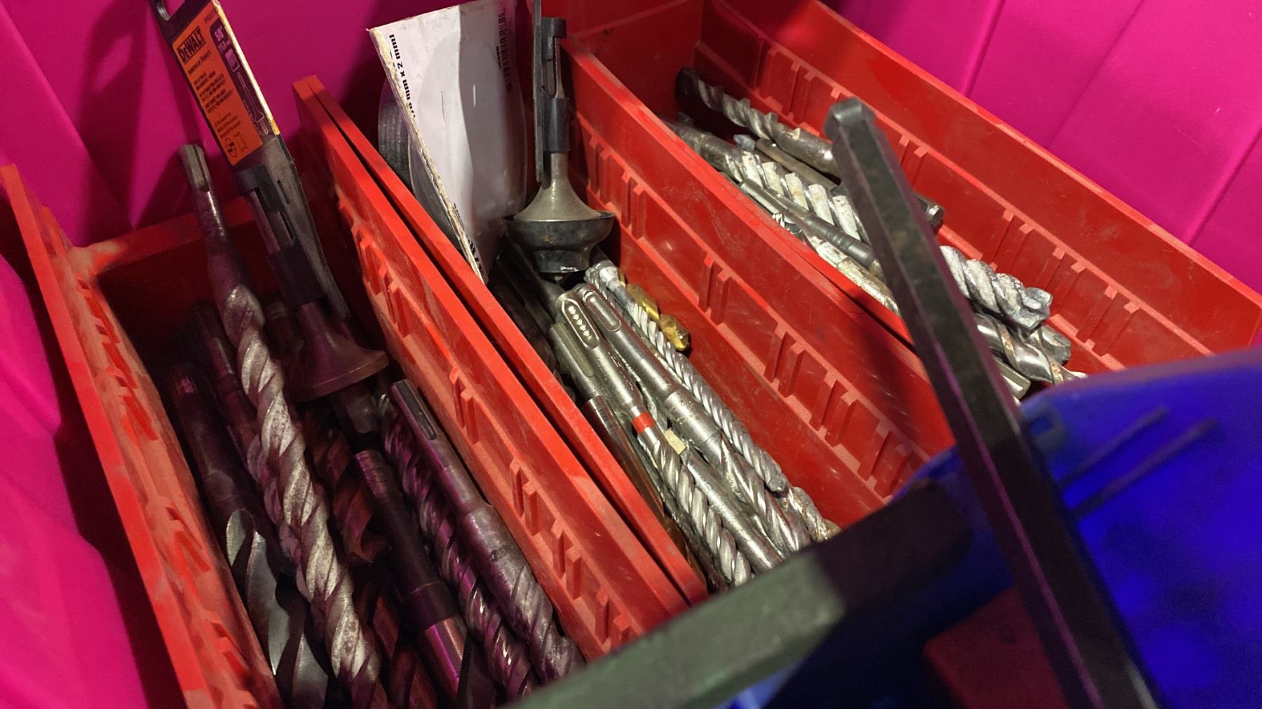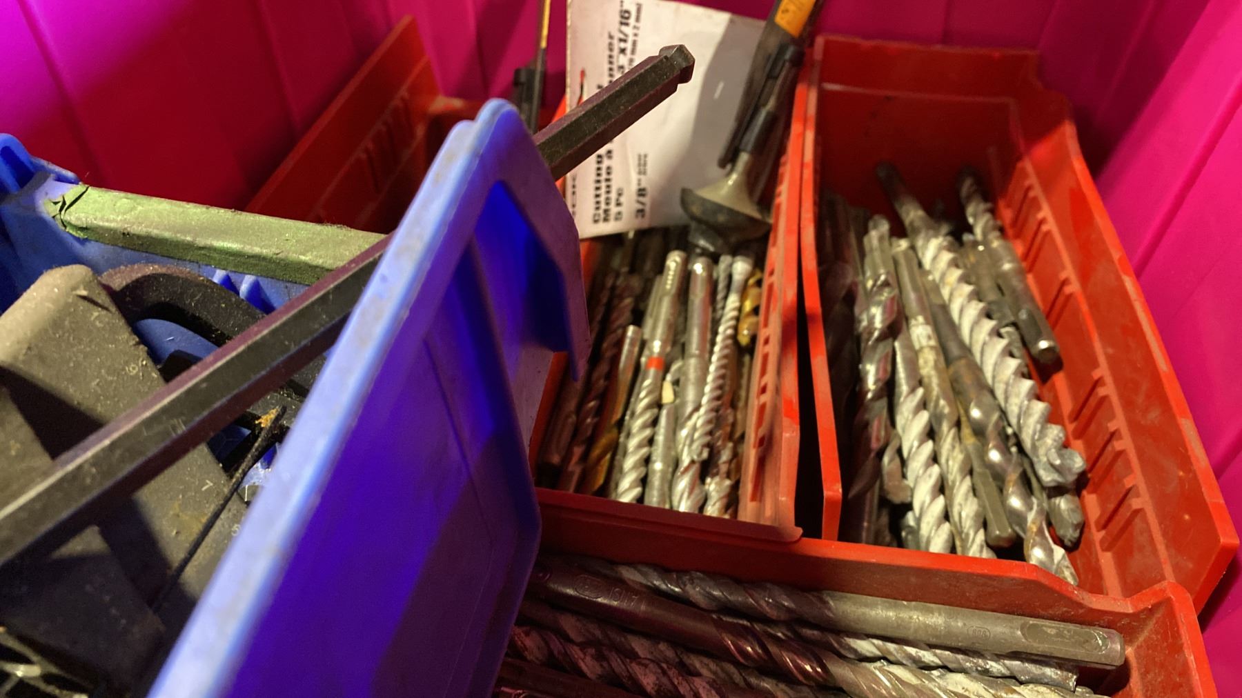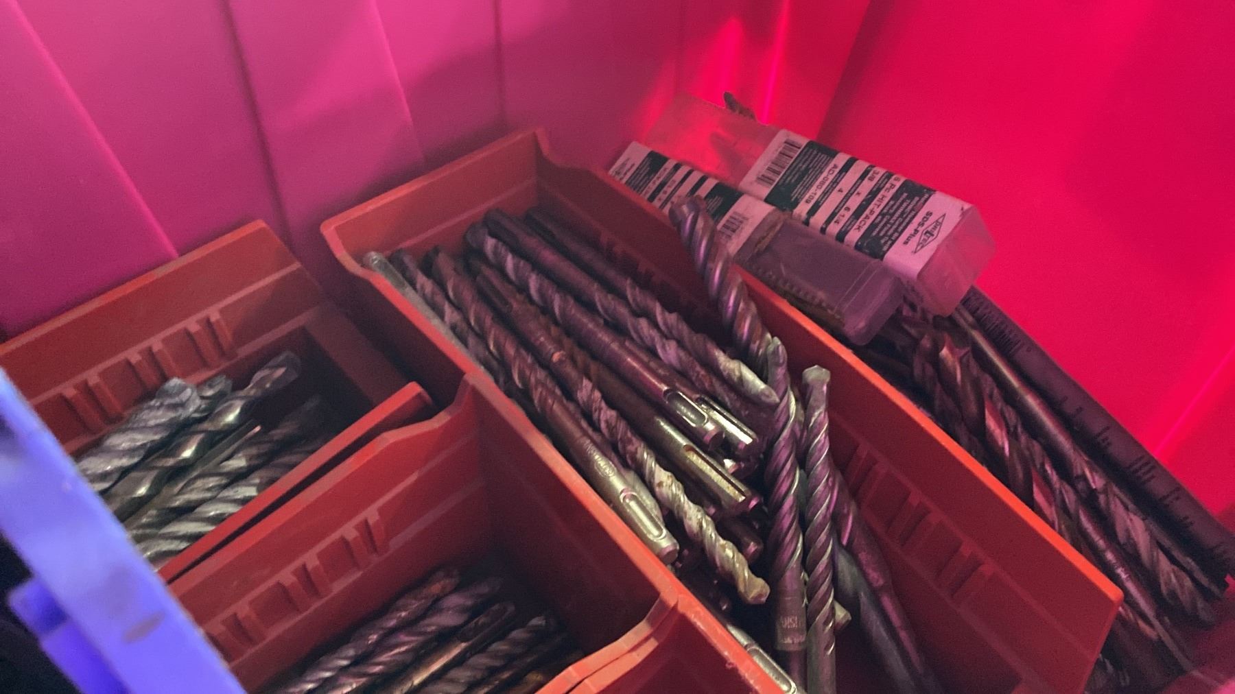 ONE BIN OF ASSORTED CONCRETE DRILL BITS *BIN NOT INCLUDED*