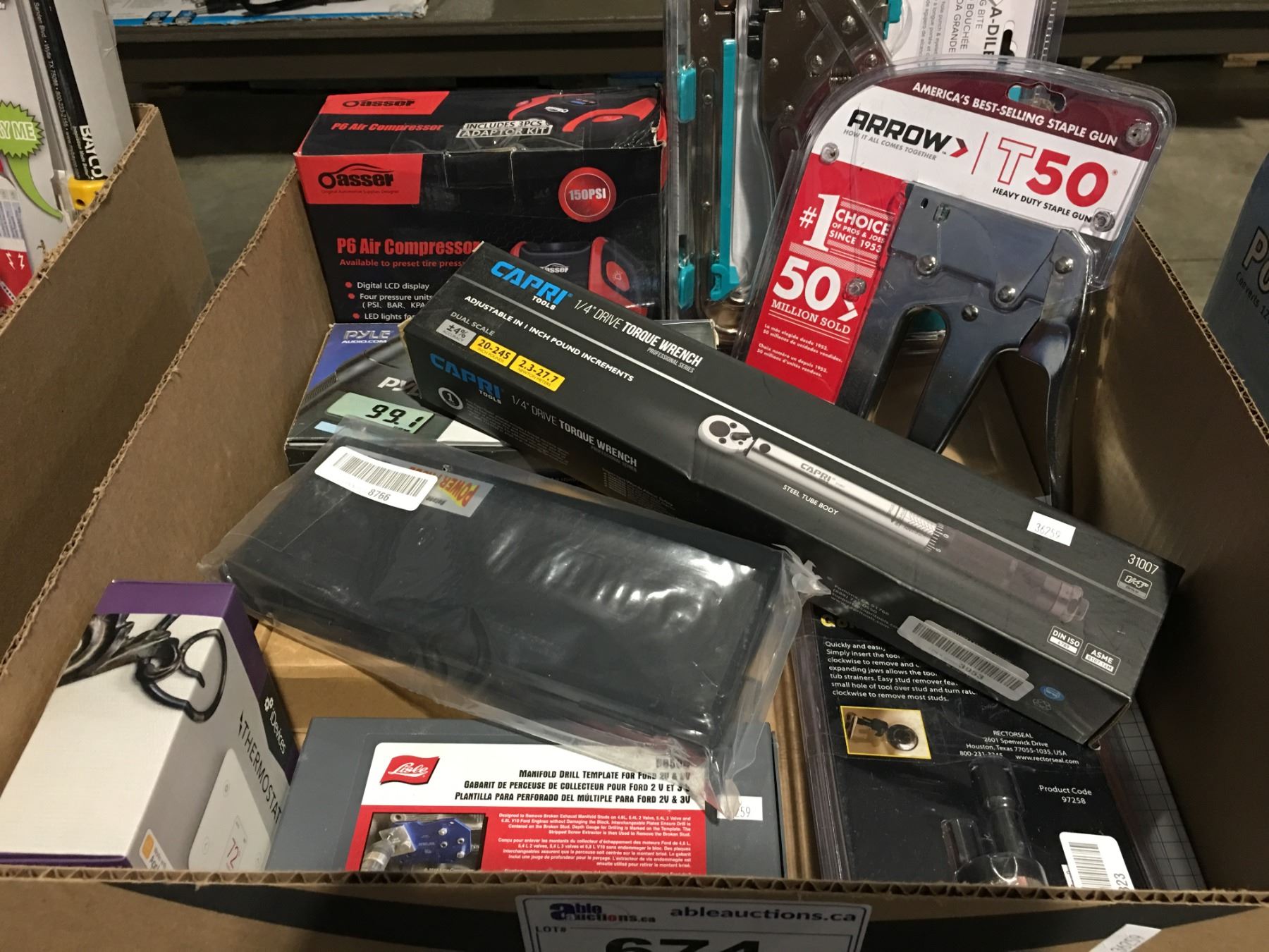 ONE BOX ASSORTED HAND TOOLS & ACCESSORIES