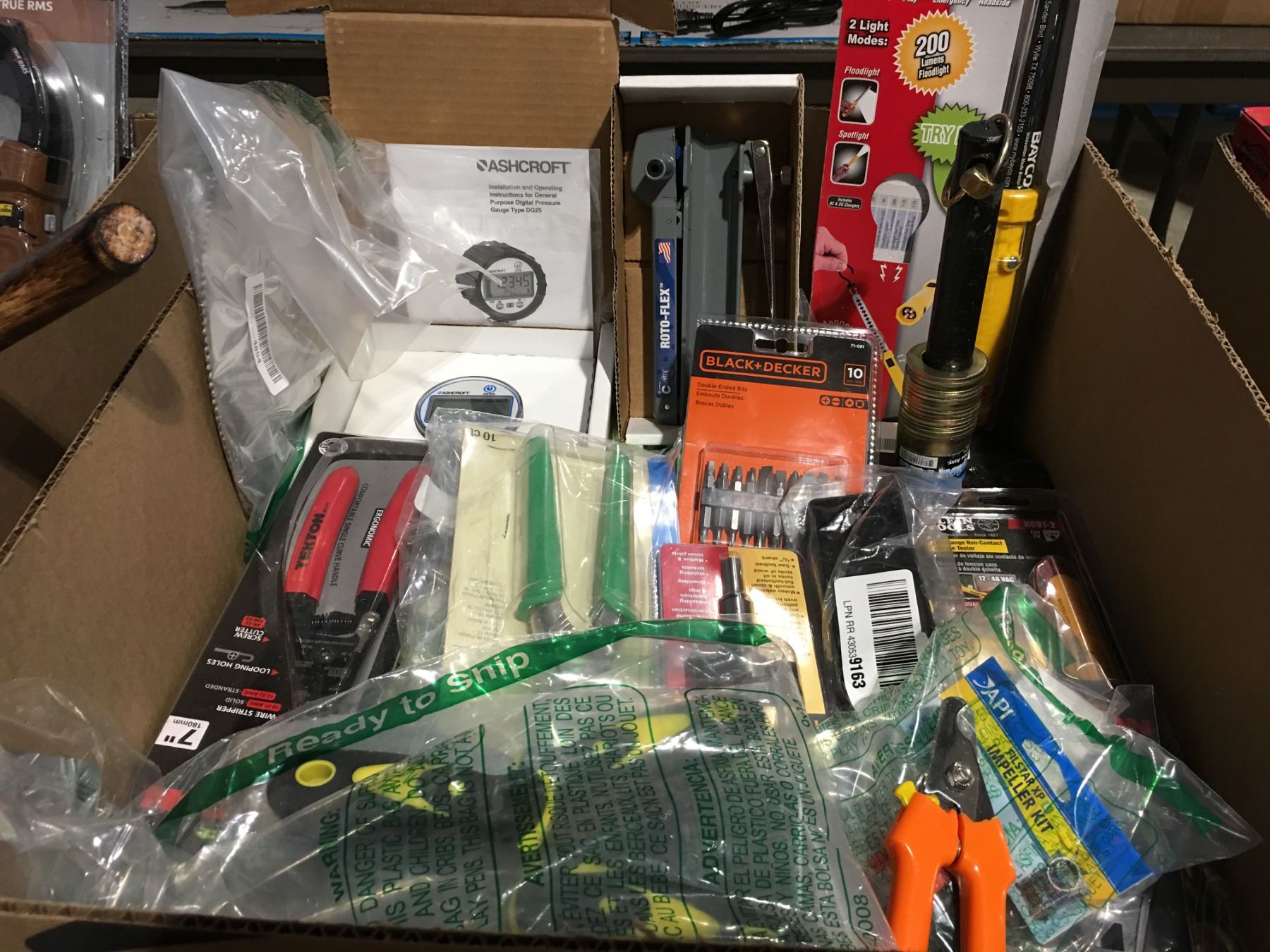 ONE BOX ASSORTED HAND TOOLS & ACCESSORIES