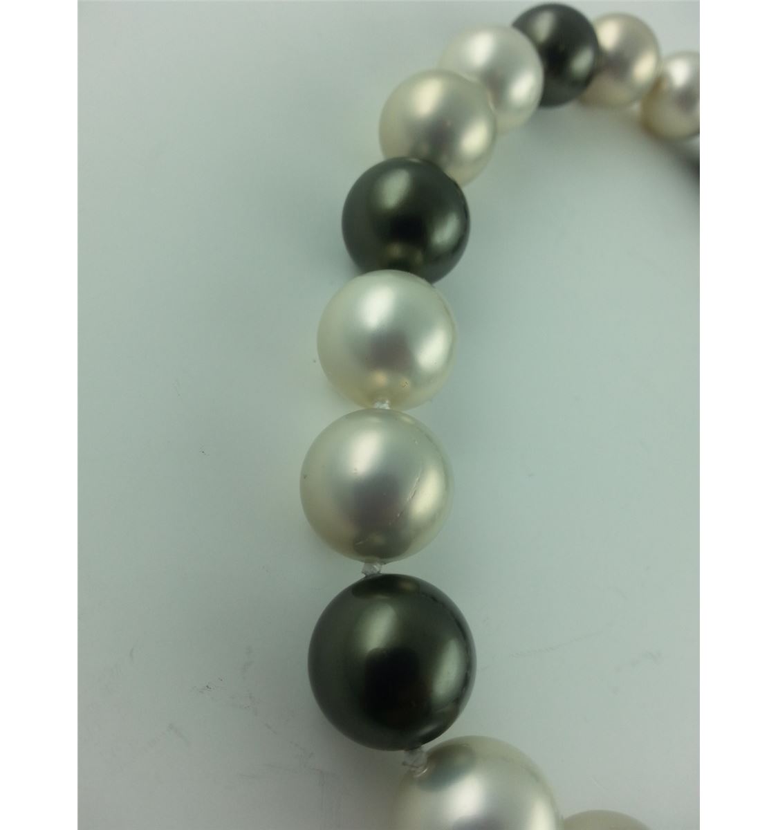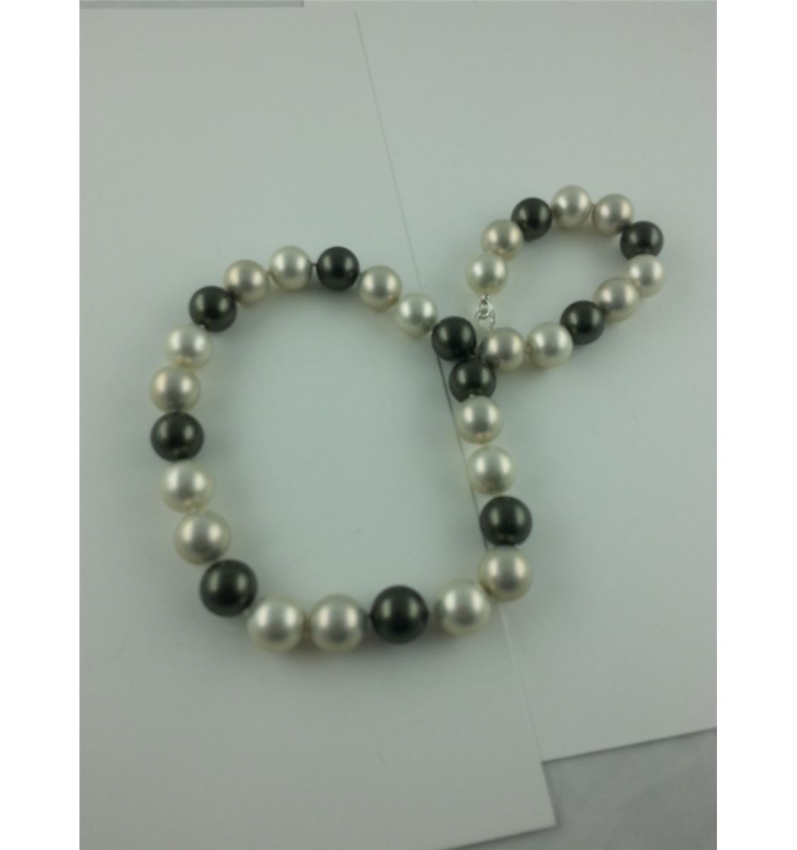 ONE CHOKER LENGTH STRAND OF MAJORCA STYLE BLACK  AND WHITE SIMULATED PEARLS, 33 BEADS REPLACEMENT VALUE $250