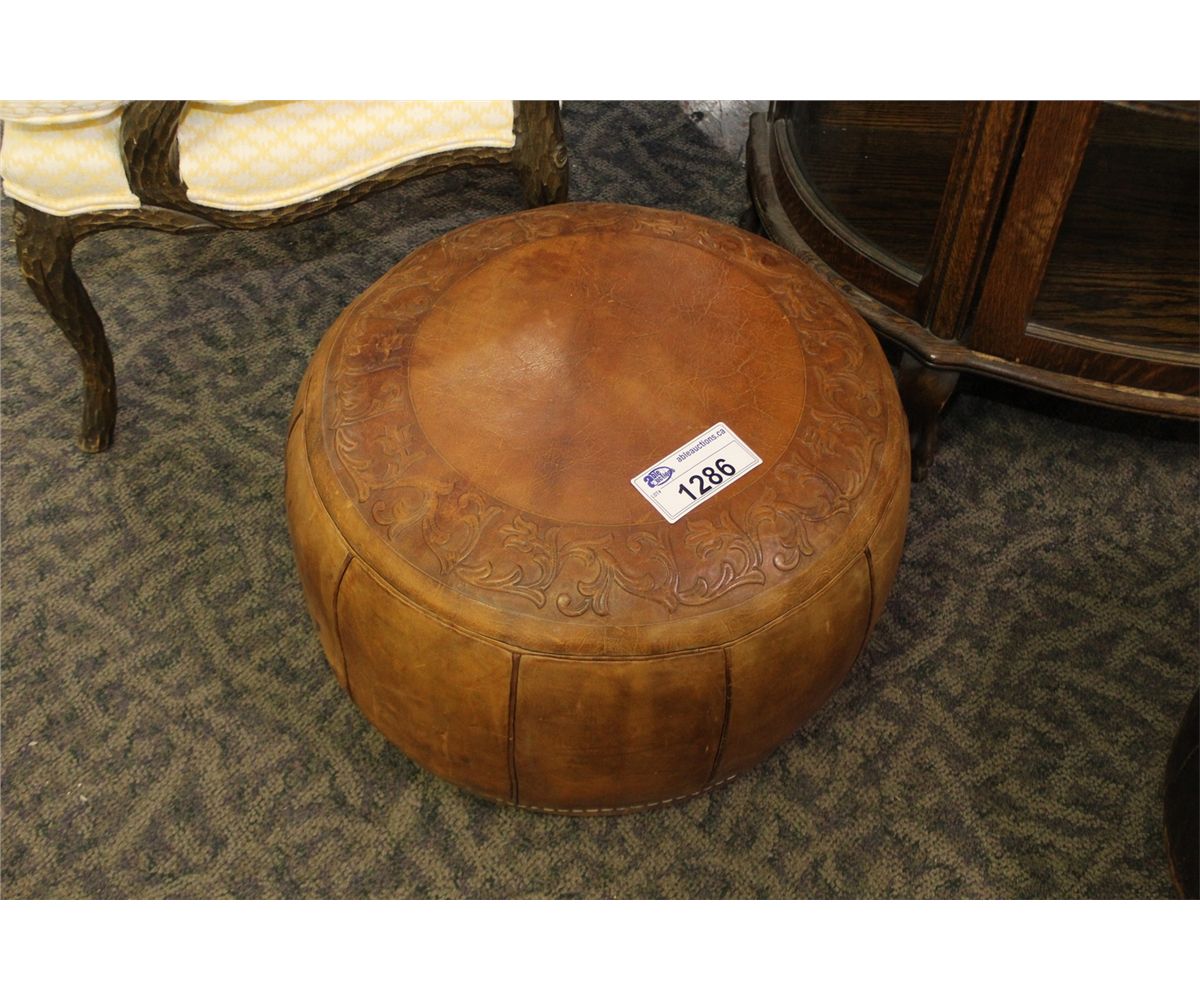 ONE CUSTOM ROUND LEATHER OTTOMAN