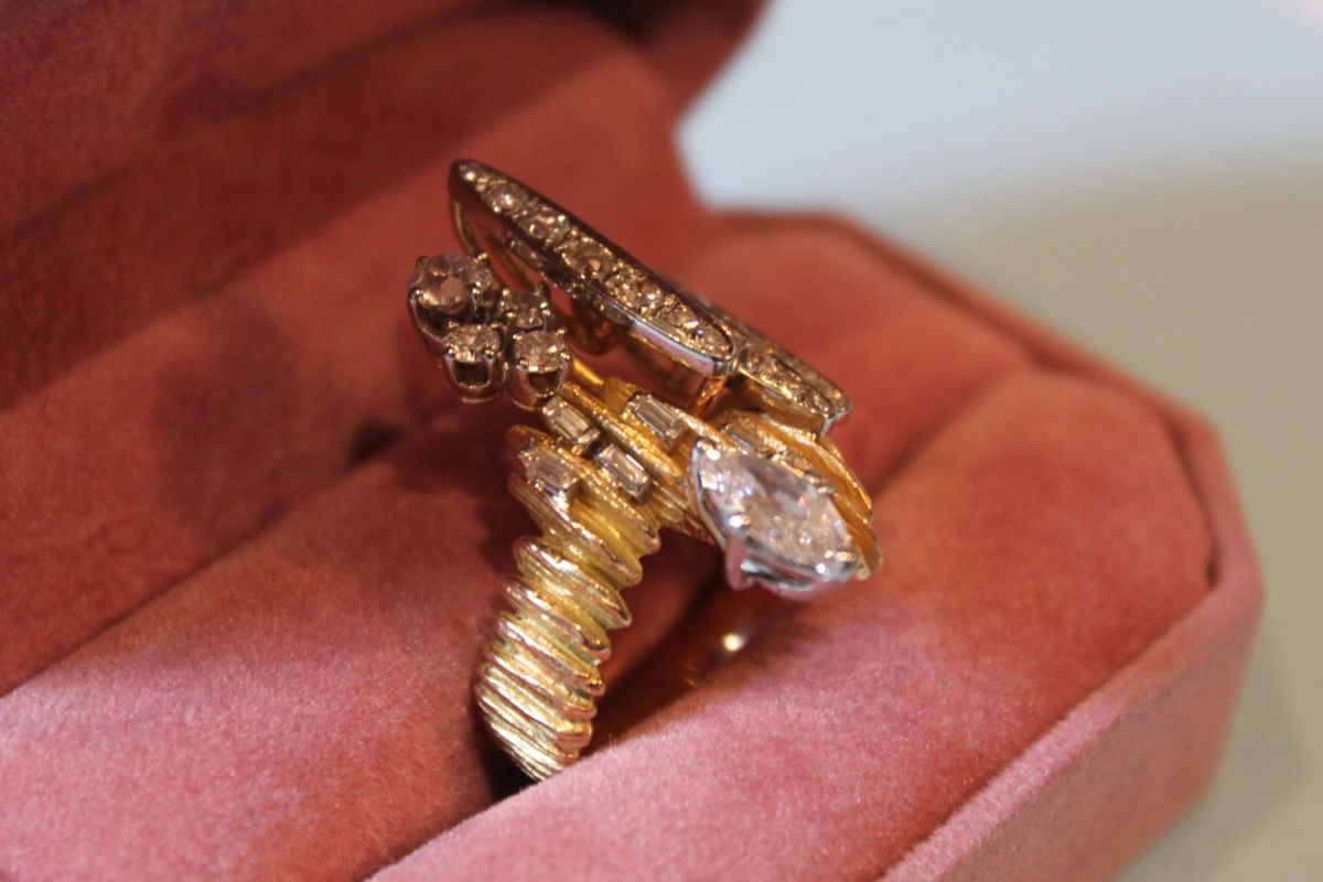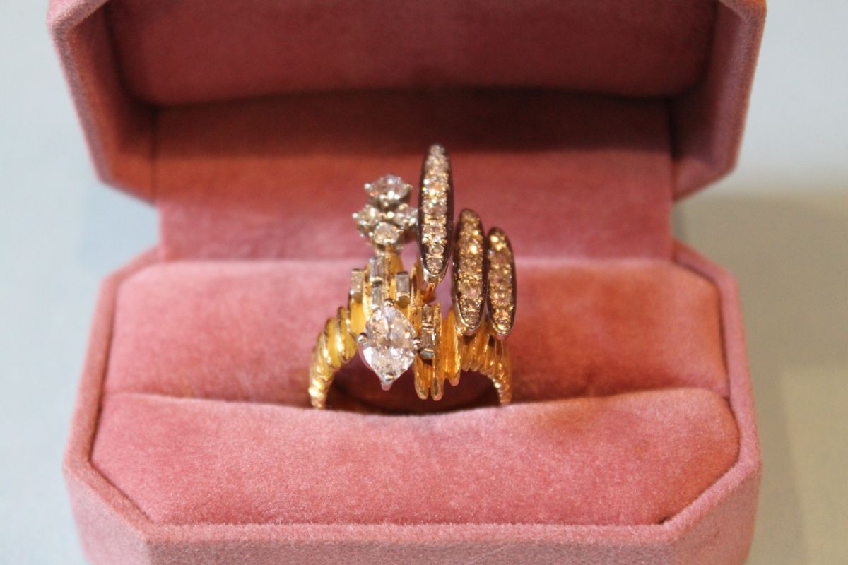 ONE HAND MADE 18KT YELLOW GOLD & WHITE GOLD TONI CAVELTI DRESS RING - APPRAISAL VALUE $19,000