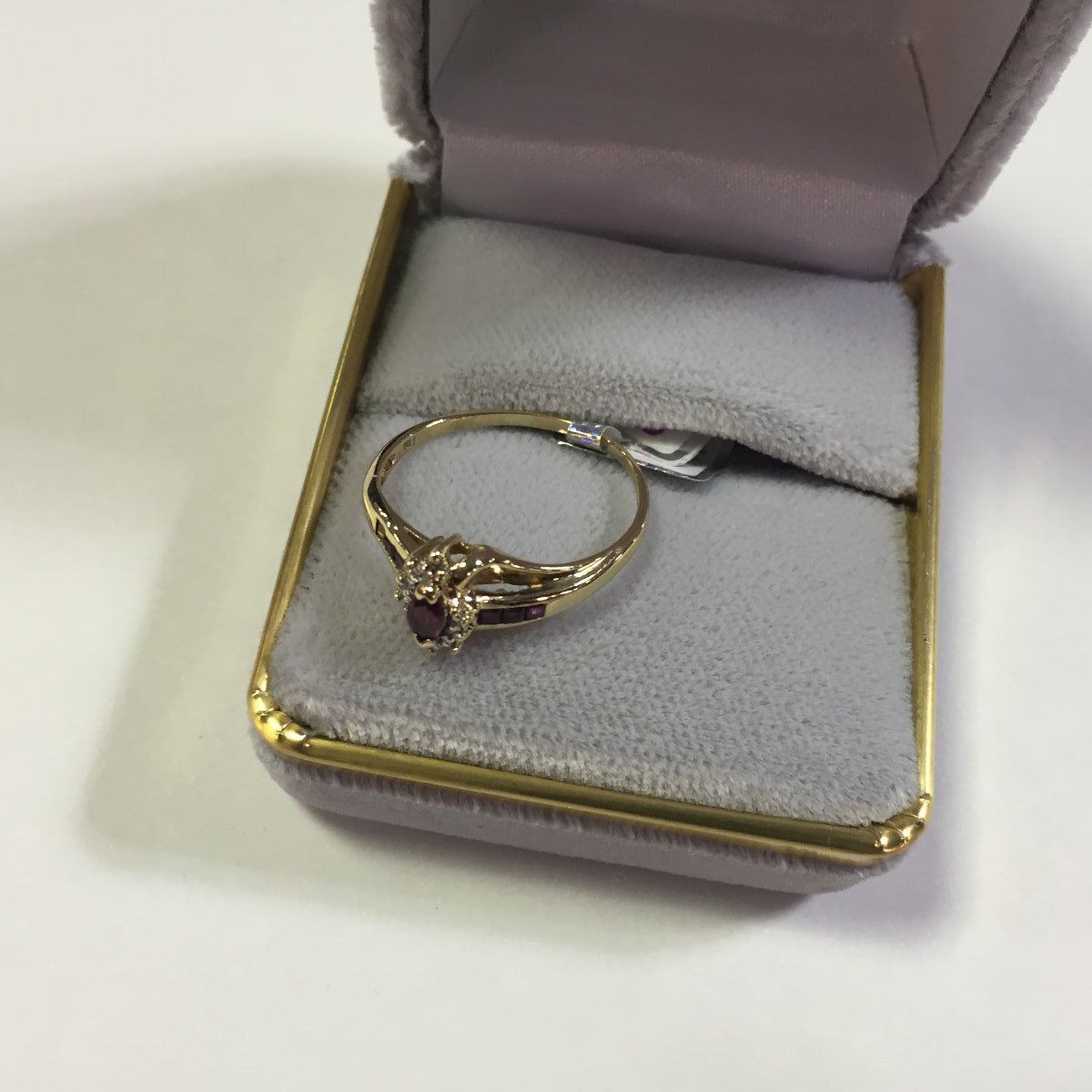 ONE LADIES 10KT YELLOW GOLD NATURAL RUBY & DIAMOND SET DRESS RING. MARQUISE SHAPED CLUSETER DESIGN. 1 MARQUISE SHAPED NATURAL RUBY 0.20CARAT 4 SINGLE CUT DIAMONDS 0.02CARAT 6 SQUARE CUT NATURAL RUBIES WEIGHT 1.80GRAMS REPLACEMENT VALUE $475