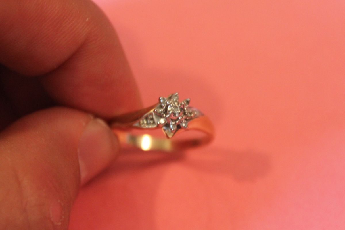 The ring is made in a round shaped cluster design and is 8.90 mm wide.