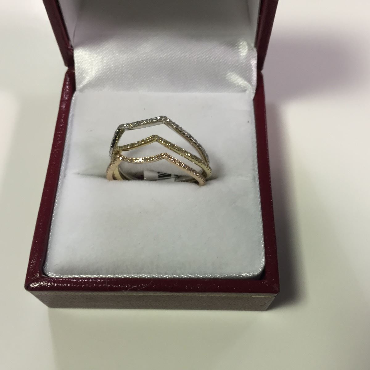 ONE LADIES 14KT TRI COLOUR YELLOW WHIT E AND ROSE GOLD THREE RING SET WITH 144 DIAMONDS, APPROX 0.22CARAT REPLACEMENT VALUE $1300