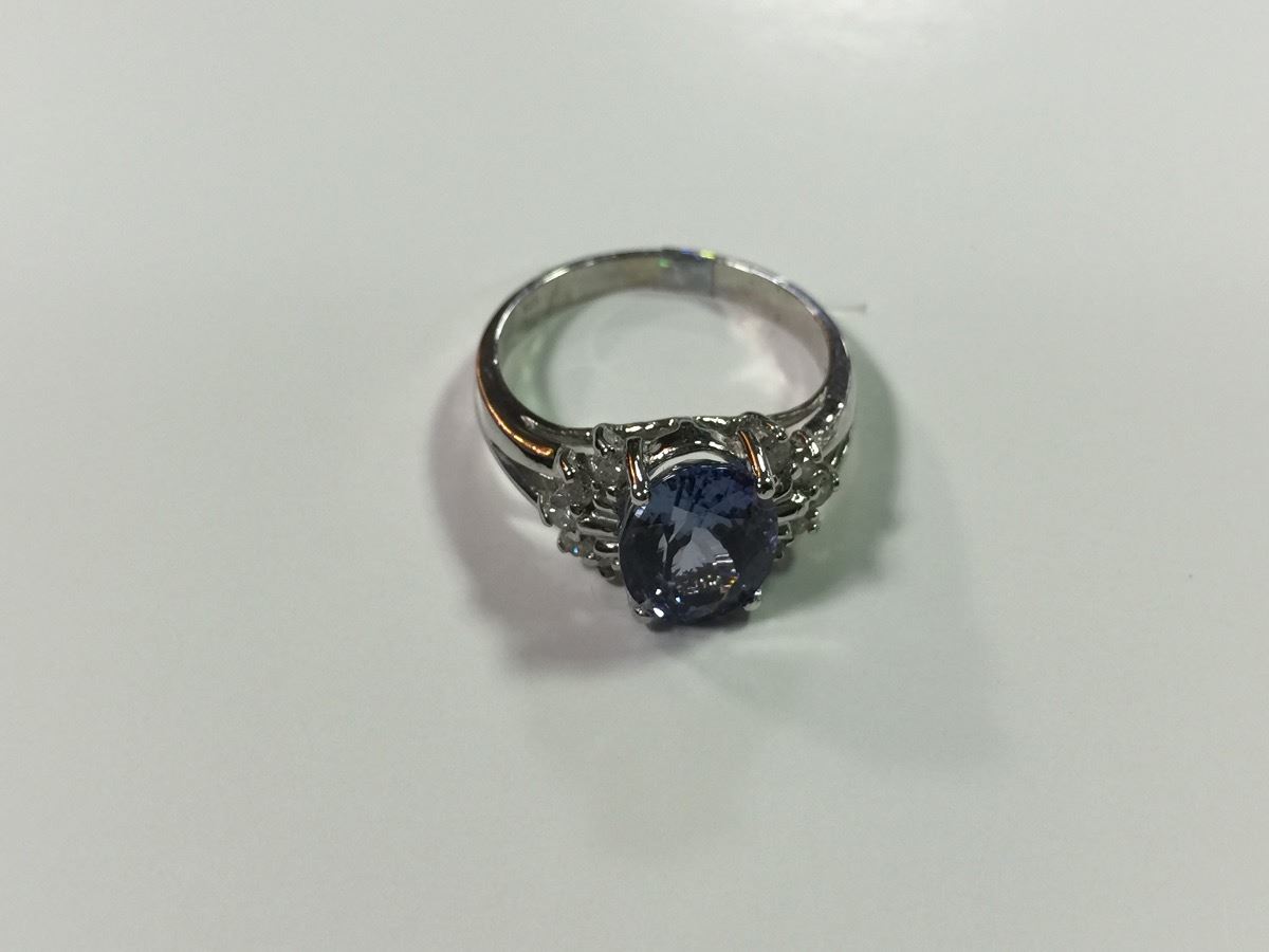ONE LADIES 14KT WHITE GOLD NATURAL TANZANITE & DIAMOND SET DRESS RING. 10 ROUND BRILLIANT CUT DIAMONDS APPROX 0.20CARAT. 1 OVAL MIXED CUT NATURAL TANZANITE APPROX 2.70CARATS WEIGHT APPROX 3.80GRAMS REPLACEMENT VALUE $1600