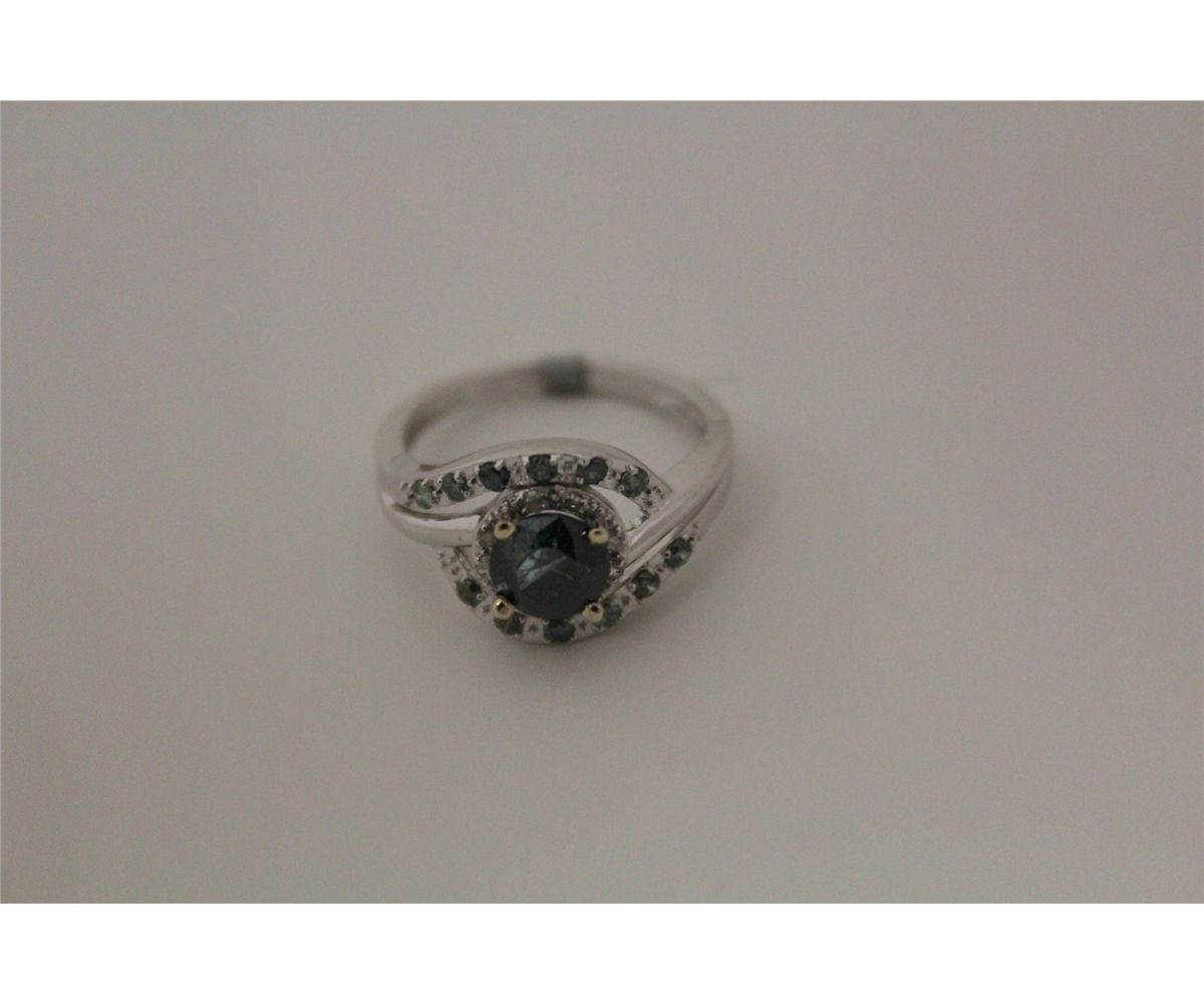 ONE LADIES 14KT WHITE GOLD TEAL BLUE (ENHANCED) AND NEAR COLOURLESS DIAMOND SET DRESS RING. THE RING IS SET WITH A TOTAL OF 1.24 CARAT, WEIGHING 3.6 GRAMS MARKED 14K. INCL. GEMMOLOGIST APPRAISAL OF $3600