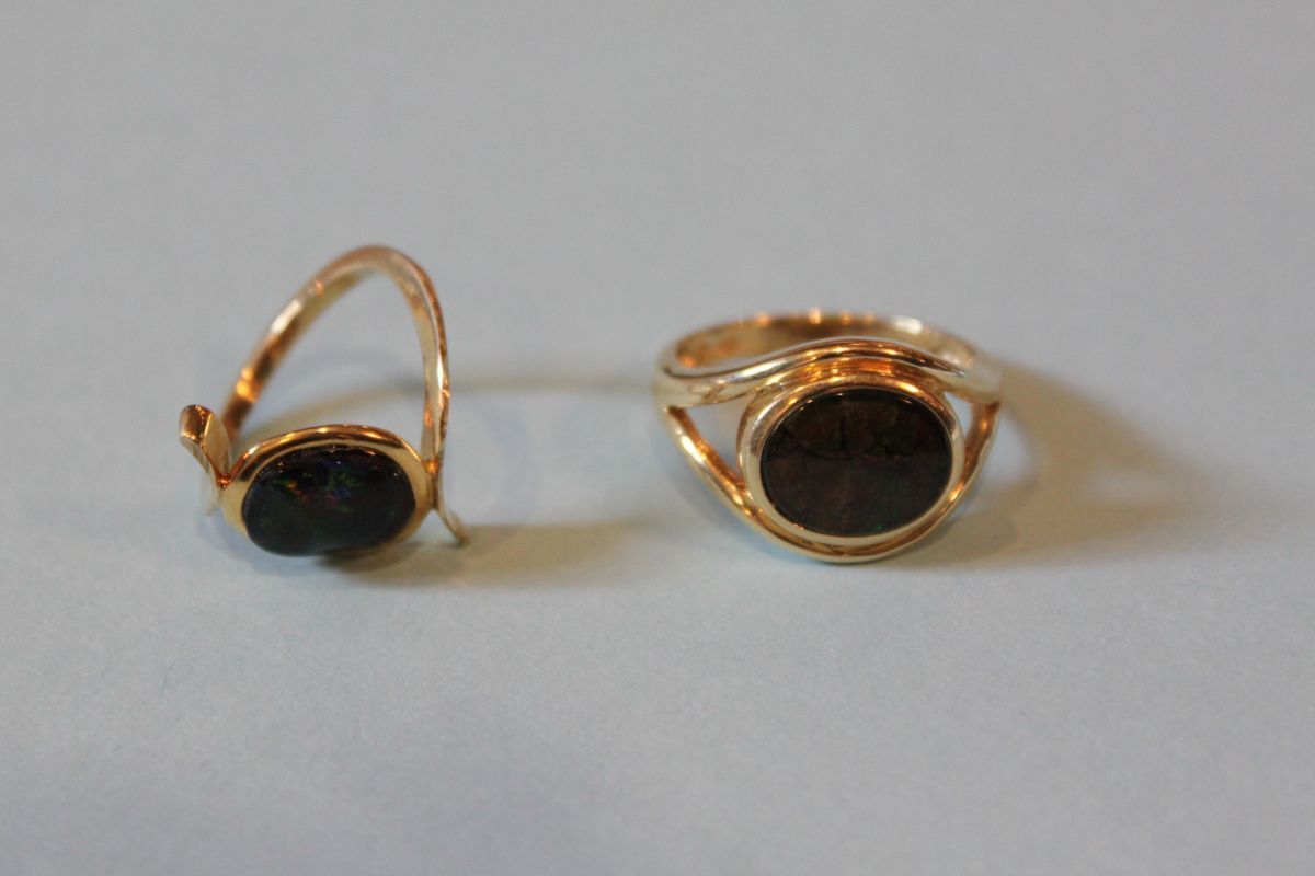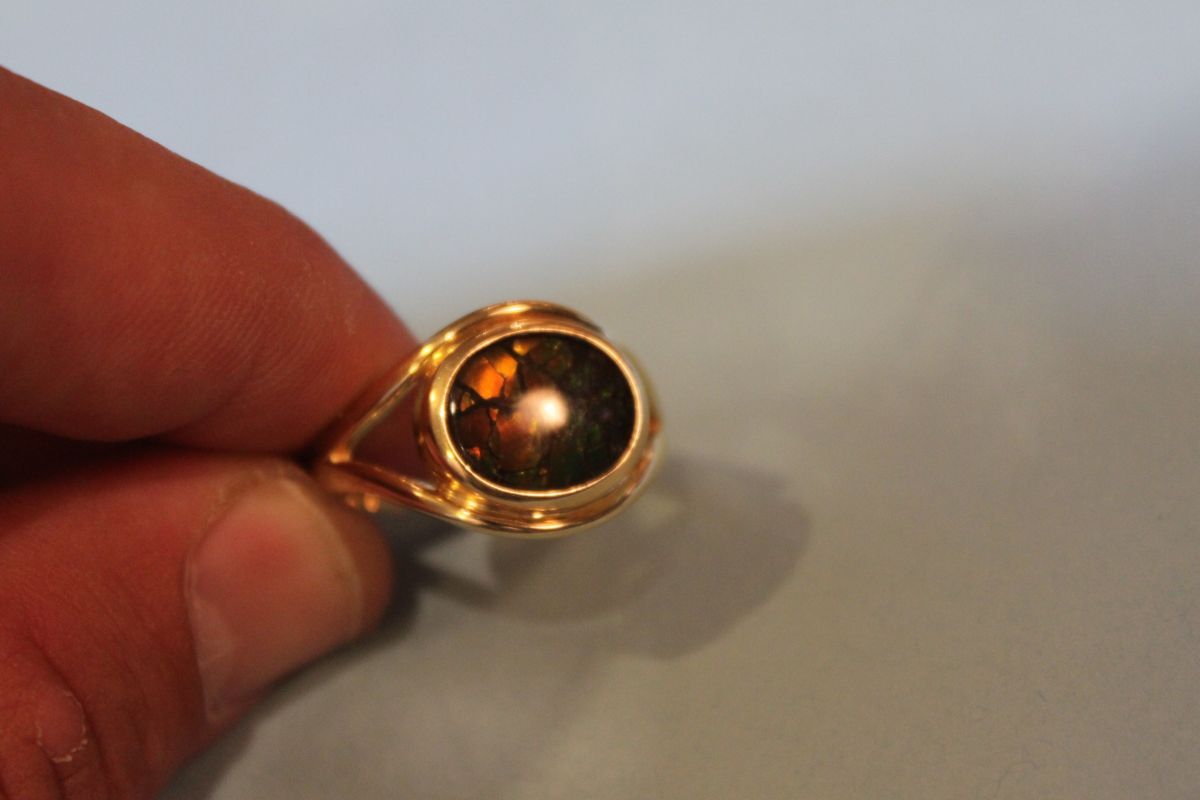 ONE LADIES 14KT YELLOW GOLD AMMOLITE DRESS RING - APPRAISAL VALUE $700, ONE LADIES 14KT YELLOW GOLD AMMOLITE (KORITE) DRESS RING - APPRAISAL VALUE $950