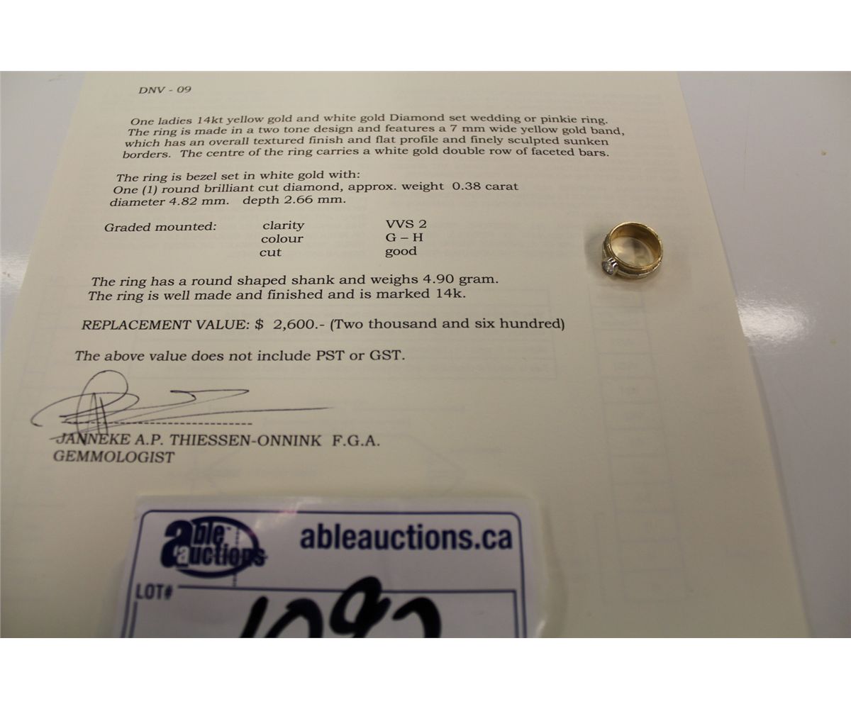 ONE LADIES 14KT YELLOW GOLD AND WHITE GOLD DIAMOND SET WEDDING OR PINKIE RING REPLACEMENT VALUE $2,600 INCLUDES PROFESSIONAL APPRAISAL