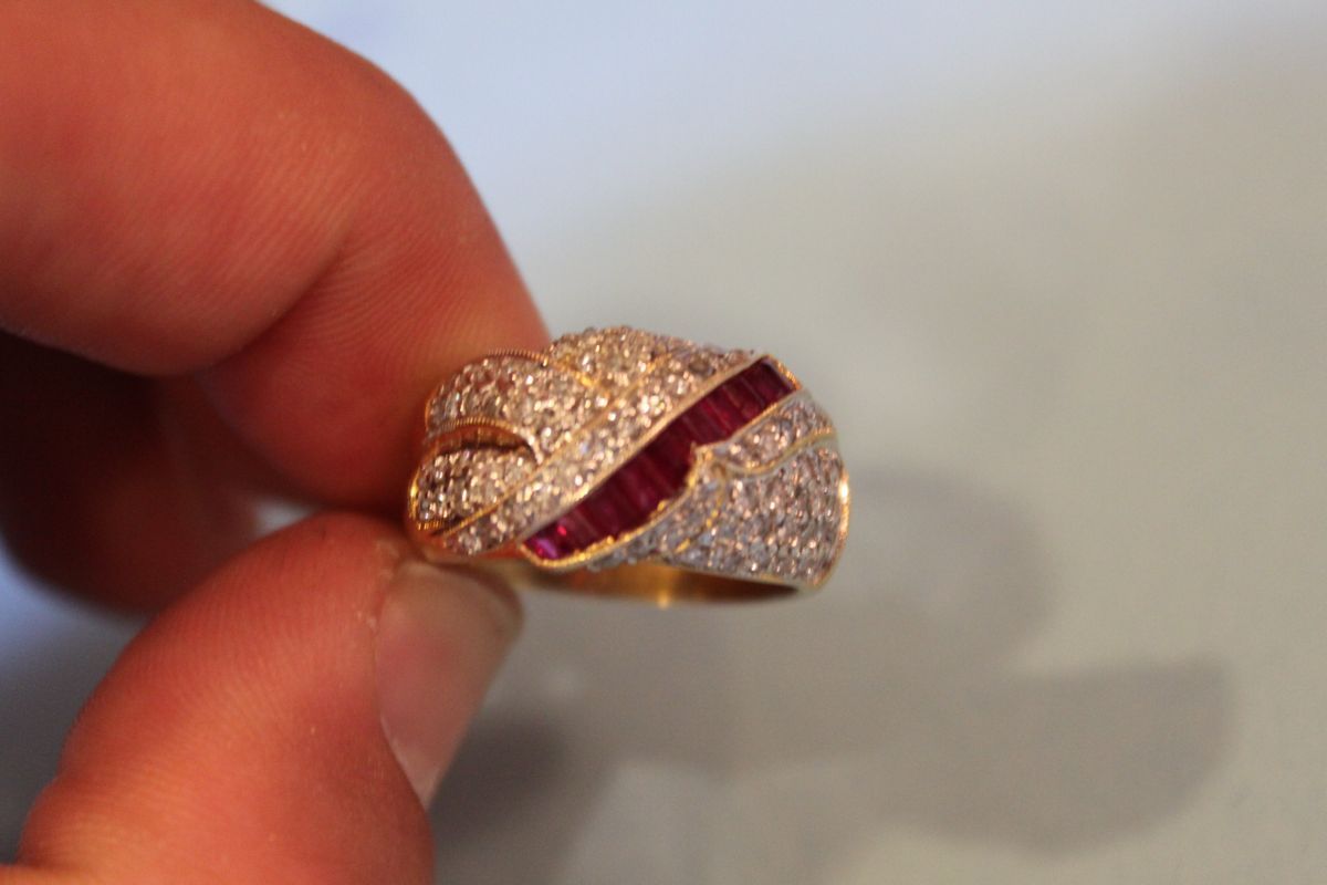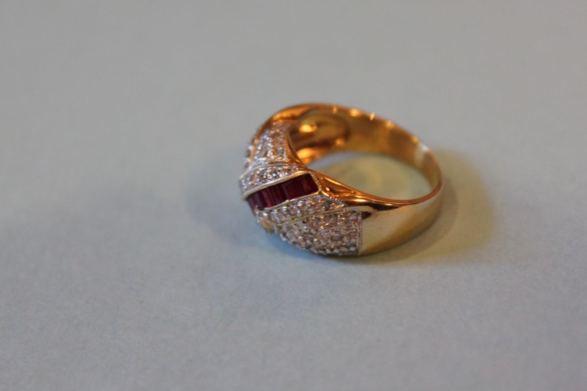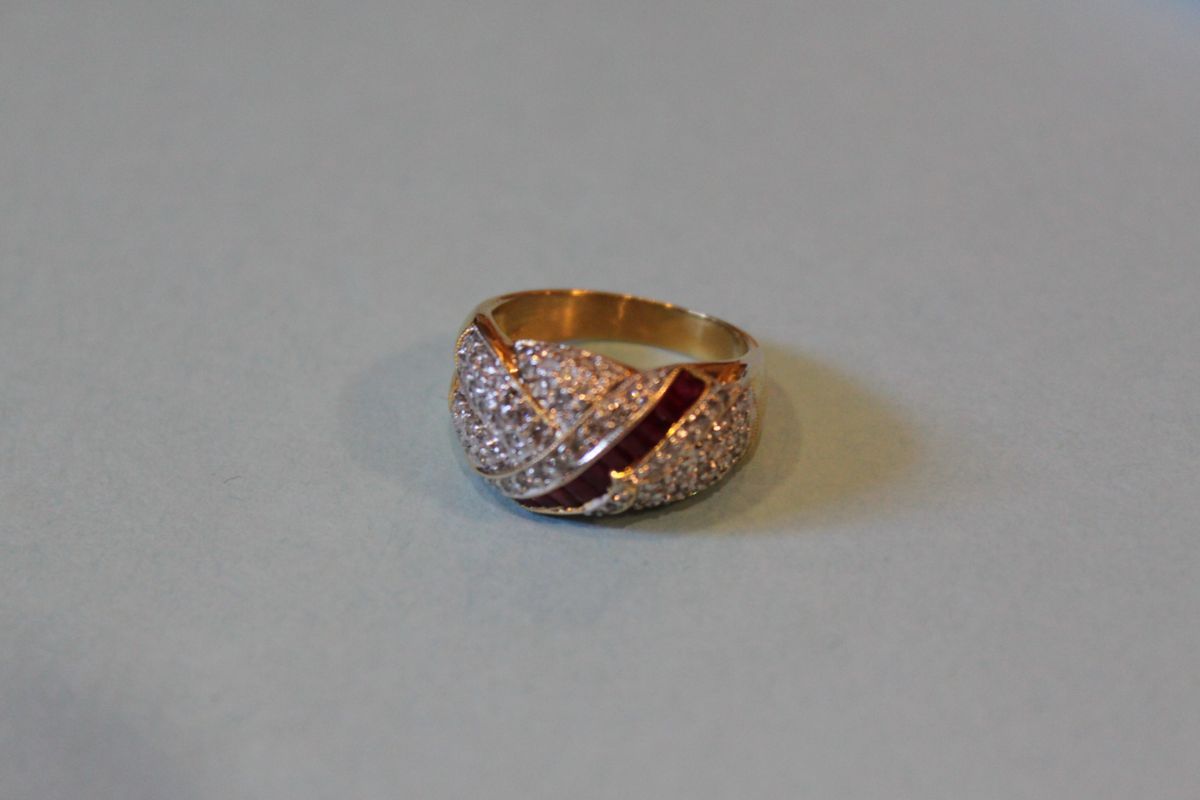ONE LADIES 14KT YELLOW GOLD & RHODIUM FINISH NATURAL RUBY & DIAMOND SET DRESS RING - APPRAISAL VALUE $2,950