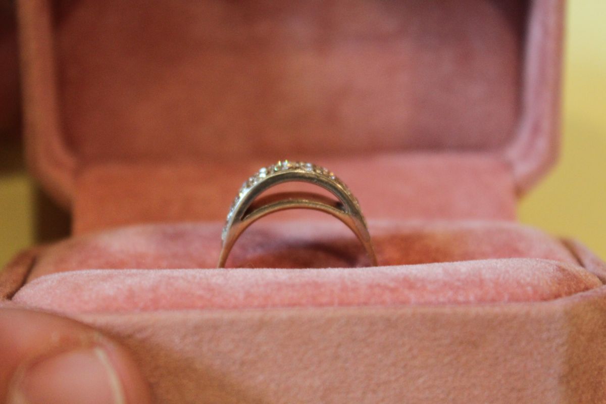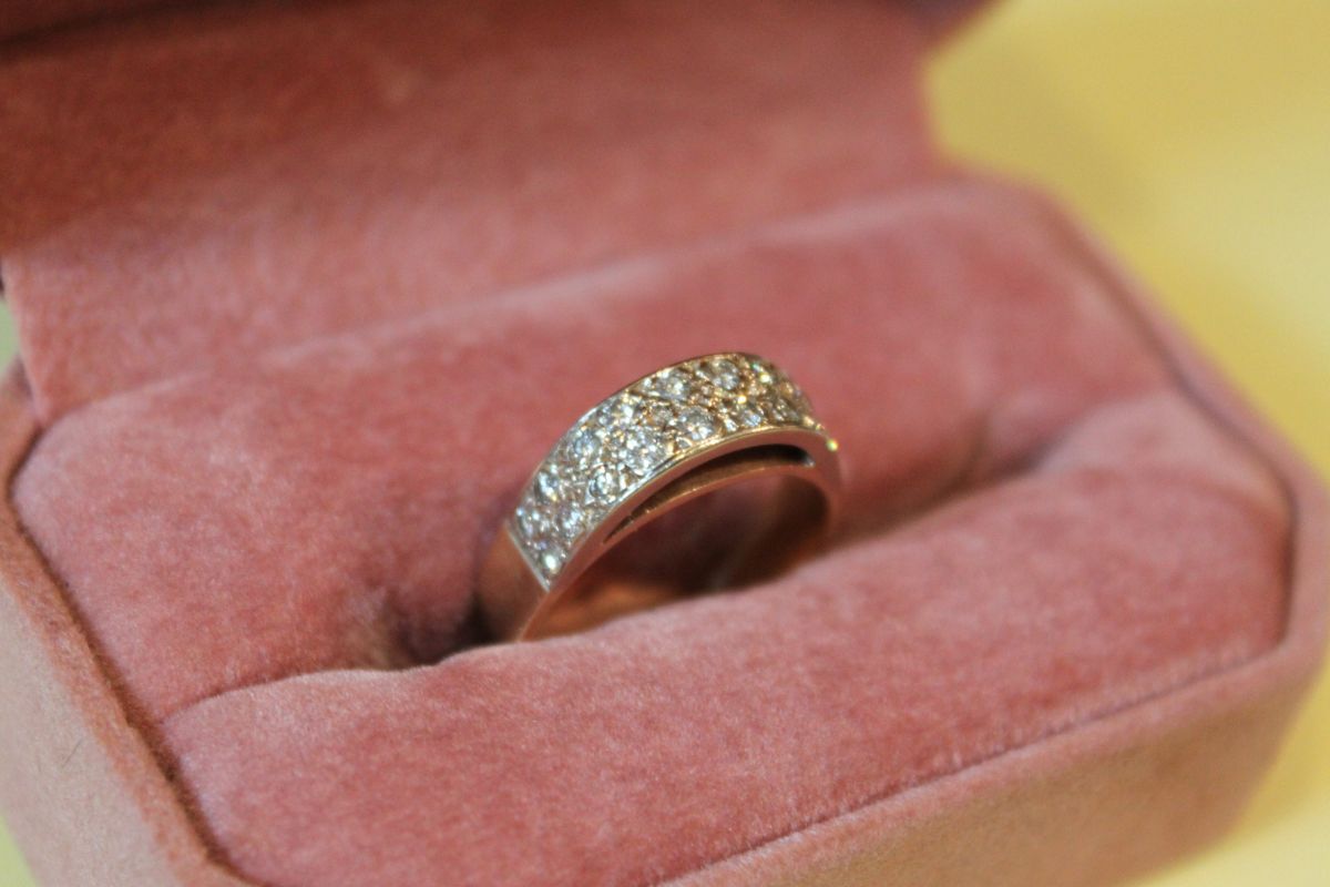 ONE LADIES CUSTOM MADE 14KT YELLOW GOLD & WHITE GOLD DIAMOND SET ANNIVERSARY OR WEDDING RING - APPRAISAL VALUE $2,700