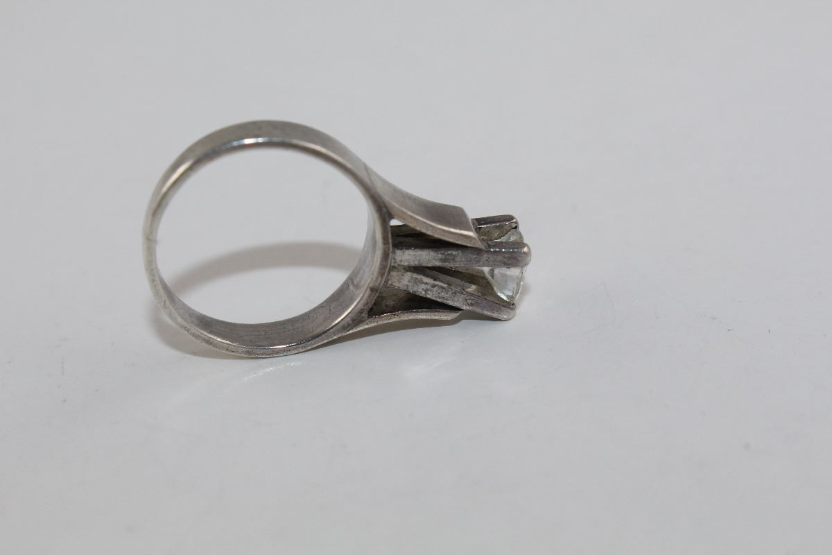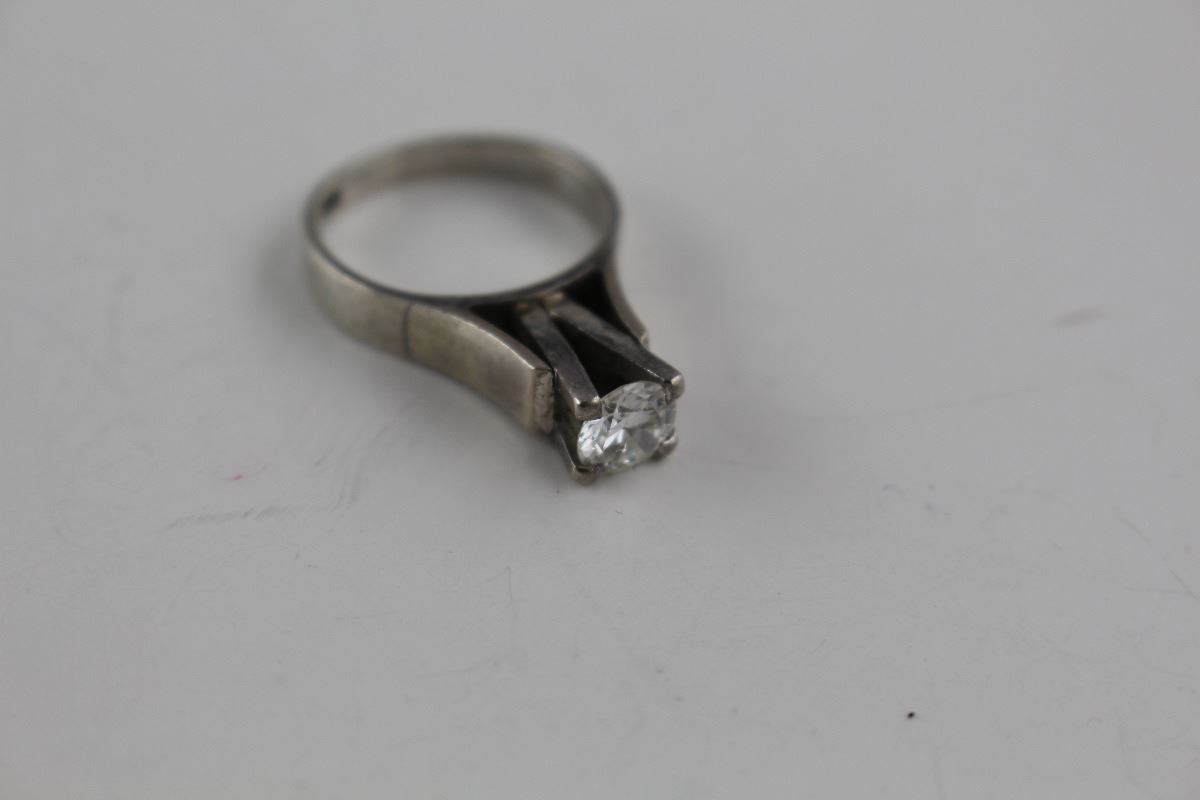 ONE LADIES SILVER ALLOY DIAMOND SET ENGAGEMENT OR DRESS RING WITH ONE DIAMOND, APPROX WEIGHT 0.65CARAT, MARKED 18K AND HAS BEEN TESTED AS SILVER REPLACEMENT VALUE $2,100