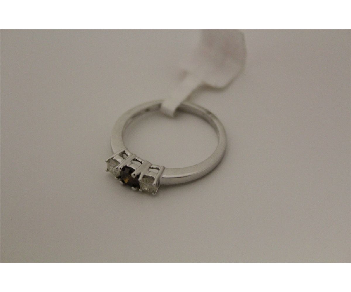 ONE LADIES STERLING SILVER COGNAC AND NEAR COLOURLESS DIAMOND SET DRESS RING. SET WITH 2 ROUND BRILLIANT CUT DIAMONDS 0.30 CARAT AND 1 ROUND BRILLIANT CUT COLOUR ENHANCED COGNAC DIAMOND 0.25 CARAT INCL. GEMMOLOGIST APPRAISAL $650