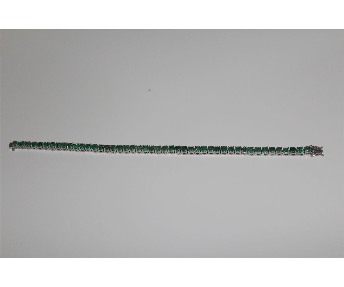 ONE LADIES STERLING SILVER EMERALD TENNIS STYLE BRACELET, SET WITH NUMEROUS ROUND SHAPE NATURAL EMERALDS, INTENSE-GREEN COLOUR. 9.1 GRAMS. INCL. DIAMOND GRADER APPRAISAL