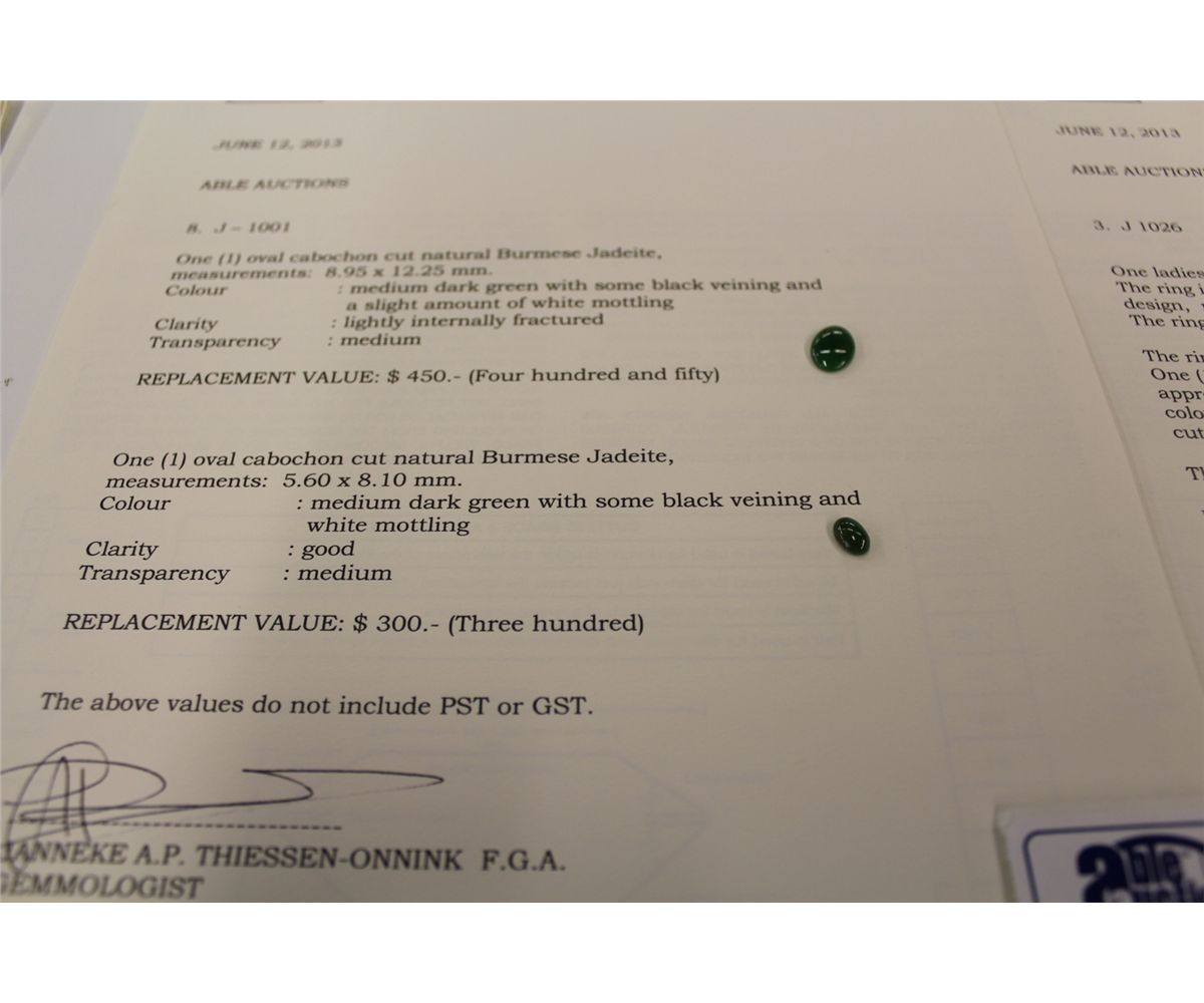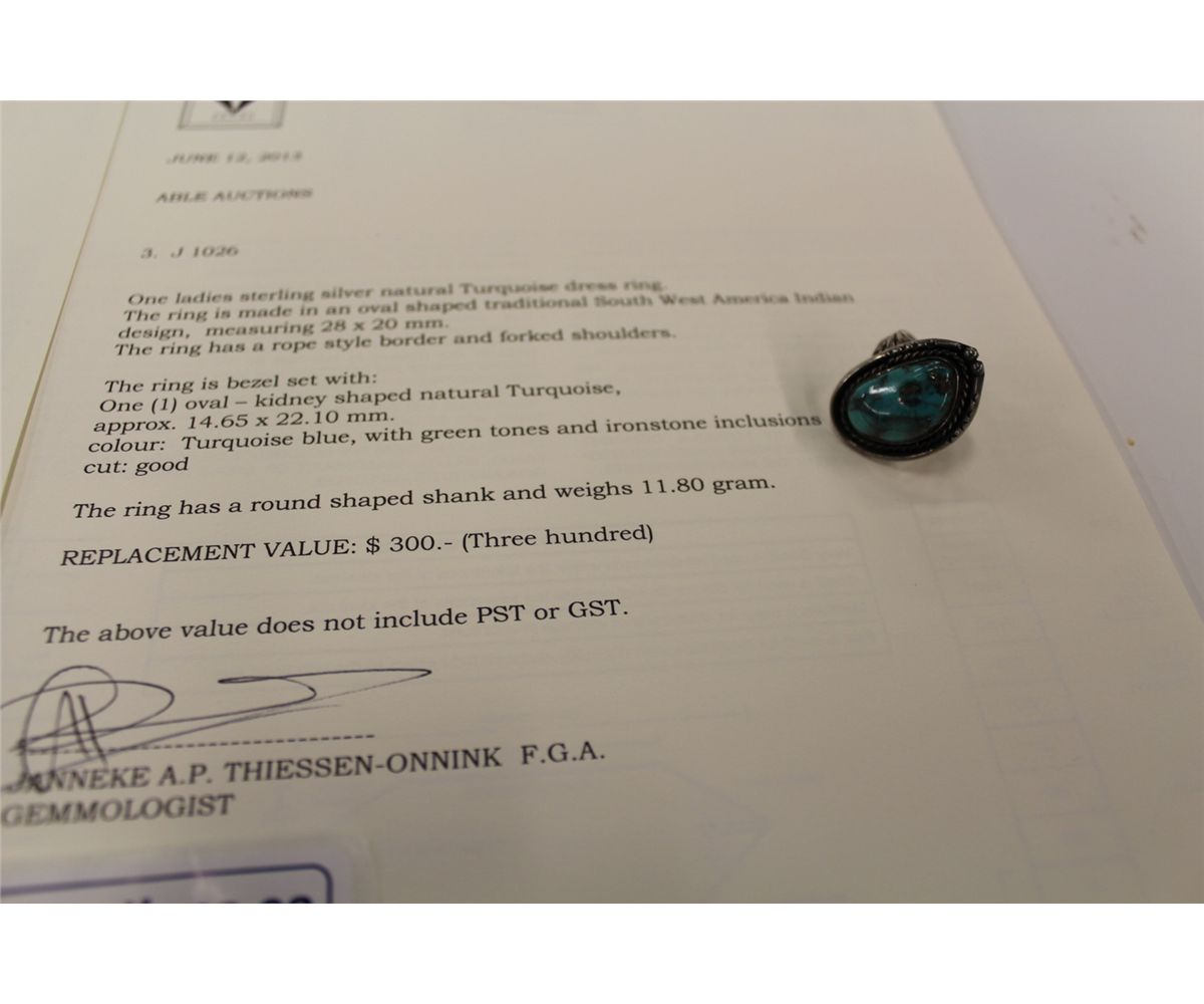 ONE LADIES STERLING SILVER NATURAL TURQUOISE DRESS RING REPLACEMENT VALUE $300 AND  2 OVAL CABOCHONCUT NATURAL BURMESE JADEITE REPLACEMENT VALUE $450 AND $300 INCLUDES PROFESSIONAL APPRAISAL