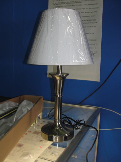ONE NEW GALANT SILVER TABLE LAMP WITH SHADE
