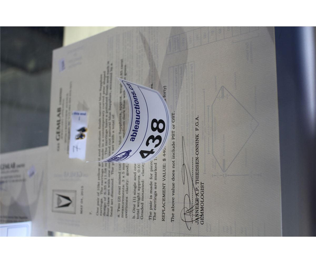 ONE PAIR OF 10KT YELLOW GOLD AND RHODIUM FINISH NATURAL BLUE SAPPHIRE EARRINGS WITH 2 SAPPHIRES, APPROX 0.85CARAT REPLACEMENT VALUE $440