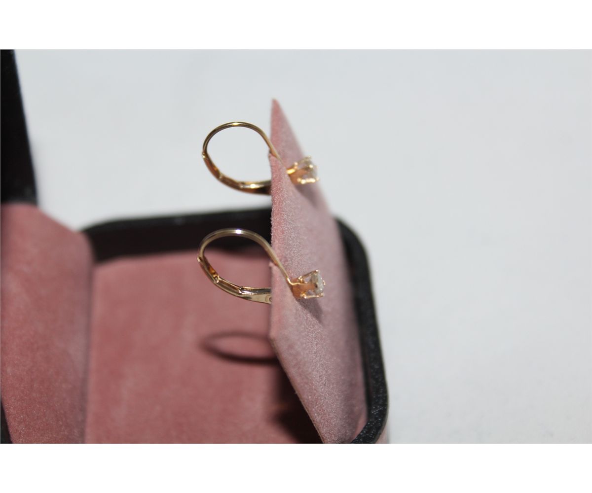 ONE PAIR OF 14KT DROP STYLE FOUR CLAW DIAMOND EARRINGS. TWO (2) ROUND BRILLIANT CUT DIAMONDS 0.25 CARATS. SI-2 I-1, COGNAC COLOUR, MED-GOOD CUT. EUROPEAN BACKINGS INCL. DIAMOND GRADER APPRAISAL