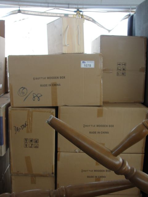 ONE PALLET FULL OF WOODEN WINE GIFT BOXES; 2 BOTTLE, 3 BOTTLE, 6 BOTTLE SETS
