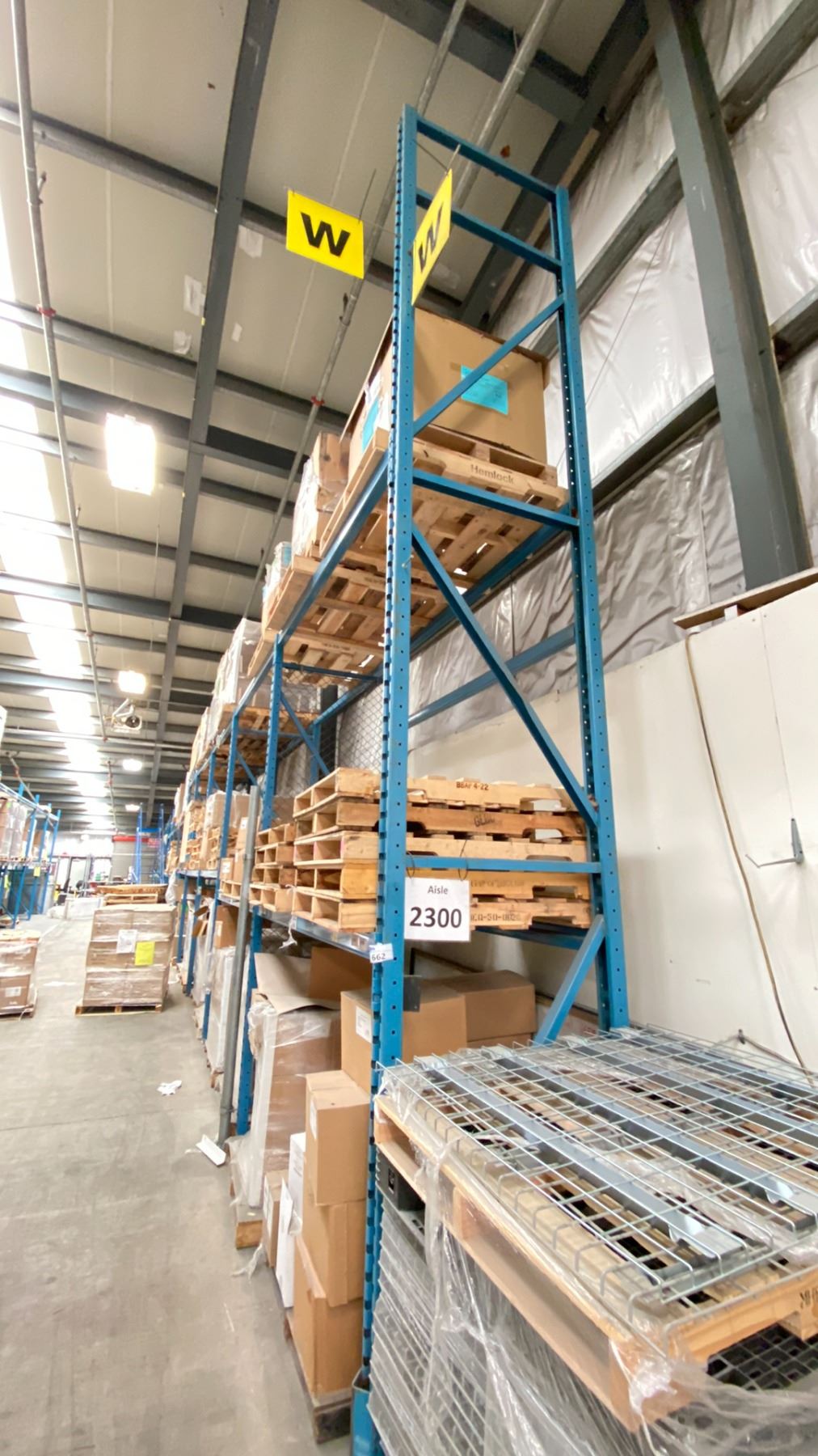 ONE ROW OF RACKING. 42" DEEP. 1 X 18' HIGH FRAMES, 12 X 12' HIGH FRAMES, 54 X 8' BEAMS. 19 X 4' SECTIONS WIRE DECKING. NO CONTENTS. *DISMANTLING AND REMOVAL OF ALL RACKING WILL BE SCHEDULED AFTER THE AUCTION WITH THE BUYERS; REMOVAL PROCESS TO START JUNE 15*