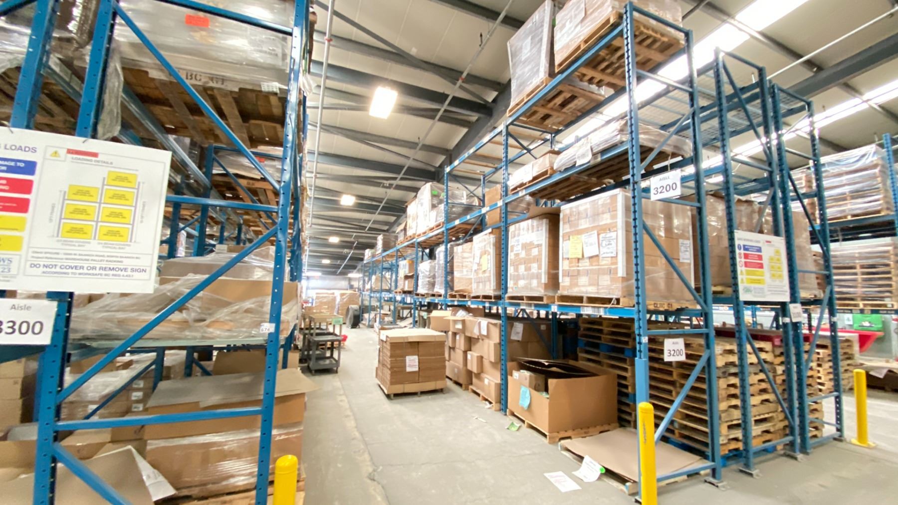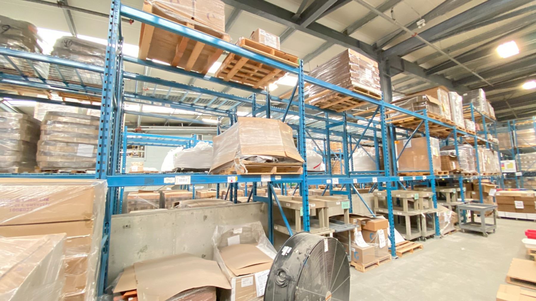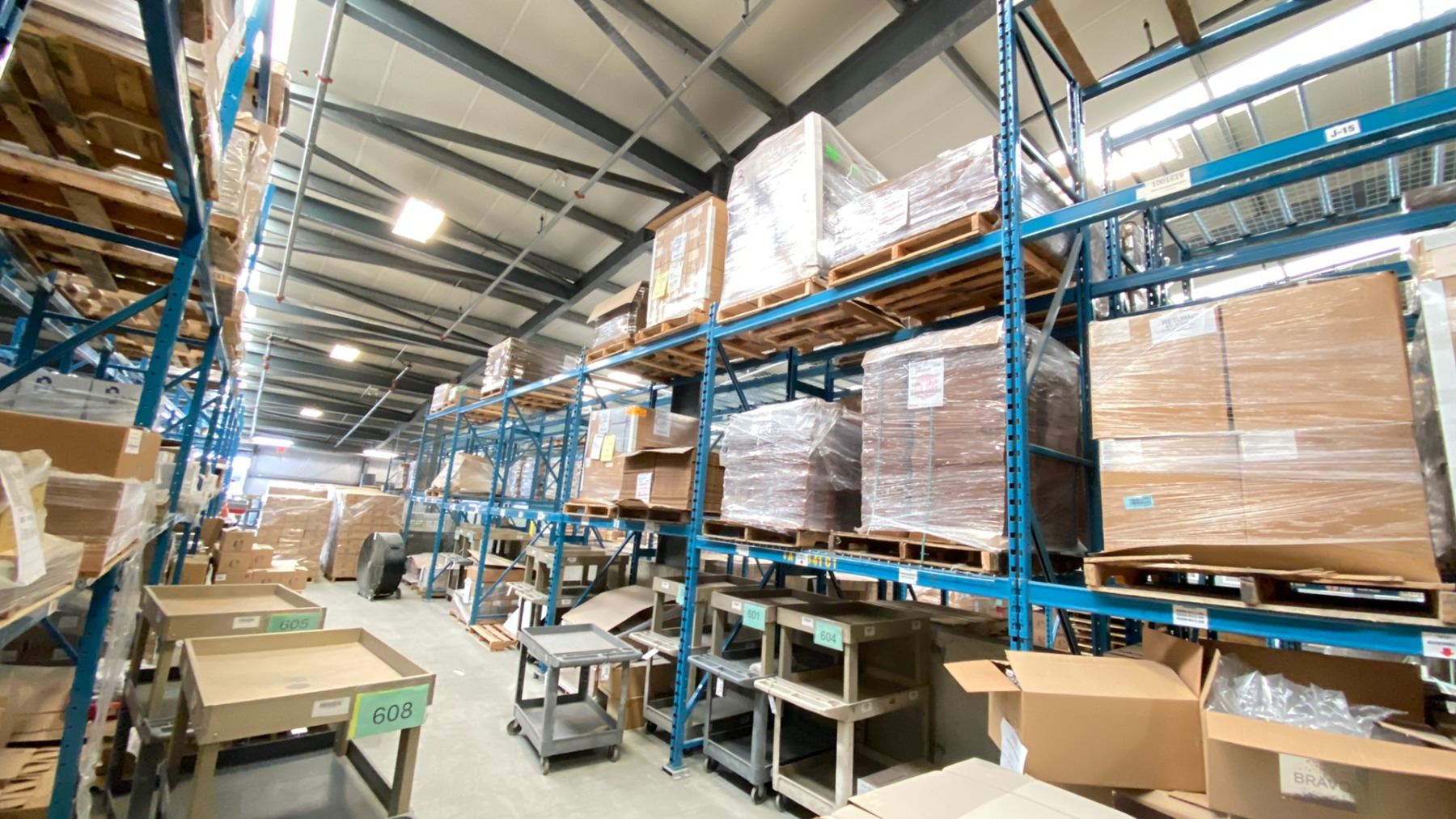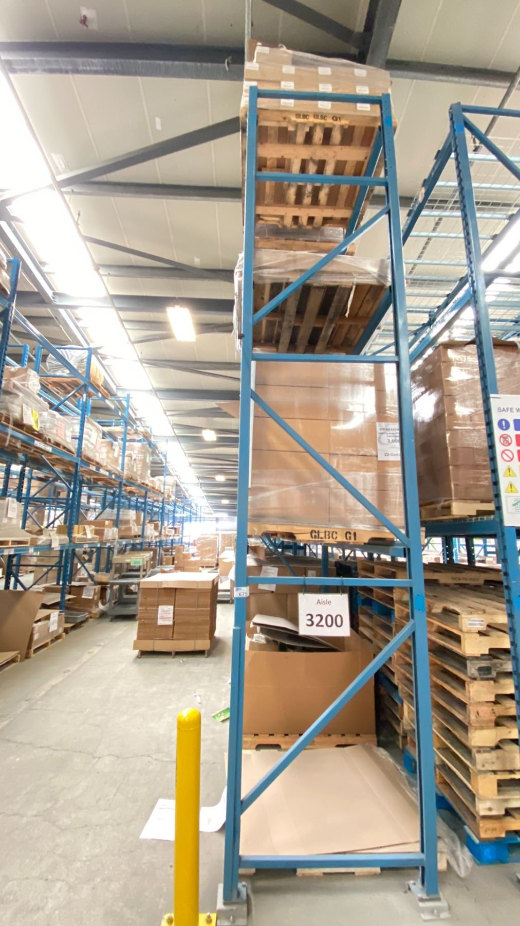 ONE ROW OF RACKING. 42" DEEP. 3 X 16' HIGH FRAMES, 5 X 12' HIGH FRAMES, 32 X 8' BEAMS, 2 X 4' SECTIONS WIRE DECKING. NO CONTENTS. *DISMANTLING AND REMOVAL OF ALL RACKING WILL BE SCHEDULED AFTER THE AUCTION WITH THE BUYERS; REMOVAL PROCESS TO START JUNE 15*