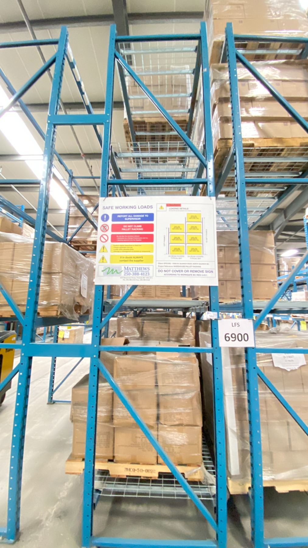 ONE ROW OF RACKING. 42" DEEP. 3 X 18' HIGH FRAMES, 10 X 12' HIGH FRAMES, 74 X 8' BEAMS, 72 X 4' SECTIONS WIRE DECKING. NO CONTENTS. *DISMANTLING AND REMOVAL OF ALL RACKING WILL BE SCHEDULED AFTER THE AUCTION WITH THE BUYERS; REMOVAL PROCESS TO START JUNE 15*