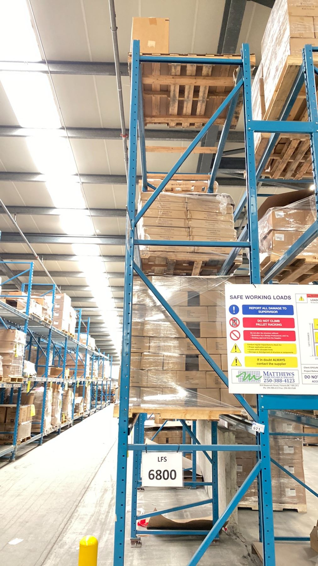 ONE ROW OF RACKING. 42" DEEP. 3 X 18' HIGH FRAMES, 10 X 12' HIGH FRAMES, 52 X 8' BEAMS. NO CONTENTS. *DISMANTLING AND REMOVAL OF ALL RACKING WILL BE SCHEDULED AFTER THE AUCTION WITH THE BUYERS; REMOVAL PROCESS TO START JUNE 15*