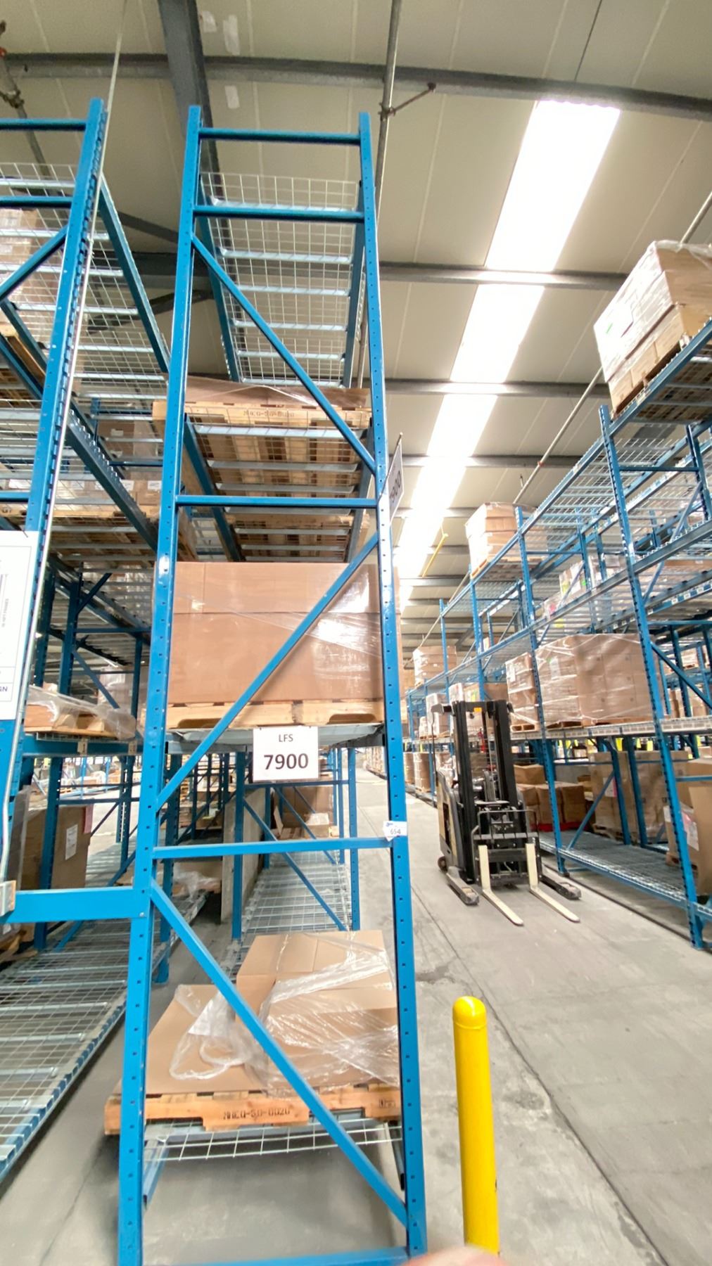ONE ROW OF RACKING. 42" DEEP. 4 X 18' HIGH FRAMES, 10 X 12' HIGH FRAMES, 64 X 8' BEAMS. 32 X 4' SECTIONS WIRE DECKING. NO CONTENTS. *DISMANTLING AND REMOVAL OF ALL RACKING WILL BE SCHEDULED AFTER THE AUCTION WITH THE BUYERS; REMOVAL PROCESS TO START JUNE 15*