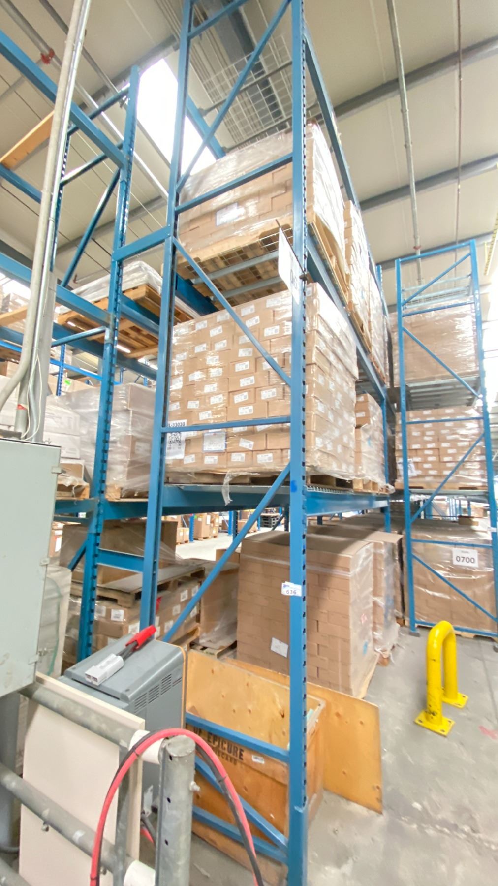 ONE ROW OF RACKING. 42" DEEP. 4 X 18' HIGH FRAMES, 4 X 12' HIGH FRAMES, 4 X 8' BEAMS. 42 X 12' BEAMS, 54 SECTIONS WIRE DECKING. NO CONTENTS. *DISMANTLING AND REMOVAL OF ALL RACKING WILL BE SCHEDULED AFTER THE AUCTION WITH THE BUYERS; REMOVAL PROCESS TO START JUNE 15*