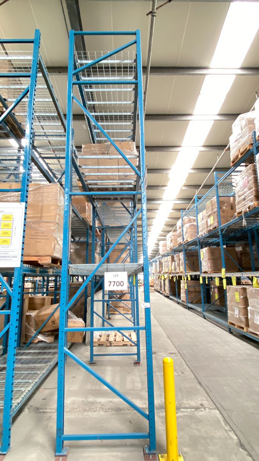 ONE ROW OF RACKING. 42" DEEP. 5 X 18' HIGH FRAMES, 9 X 12' HIGH FRAMES, 60 X 8' BEAMS. 28 X 4' SECTIONS WIRE DECKING. NO CONTENTS. *DISMANTLING AND REMOVAL OF ALL RACKING WILL BE SCHEDULED AFTER THE AUCTION WITH THE BUYERS; REMOVAL PROCESS TO START JUNE 15*
