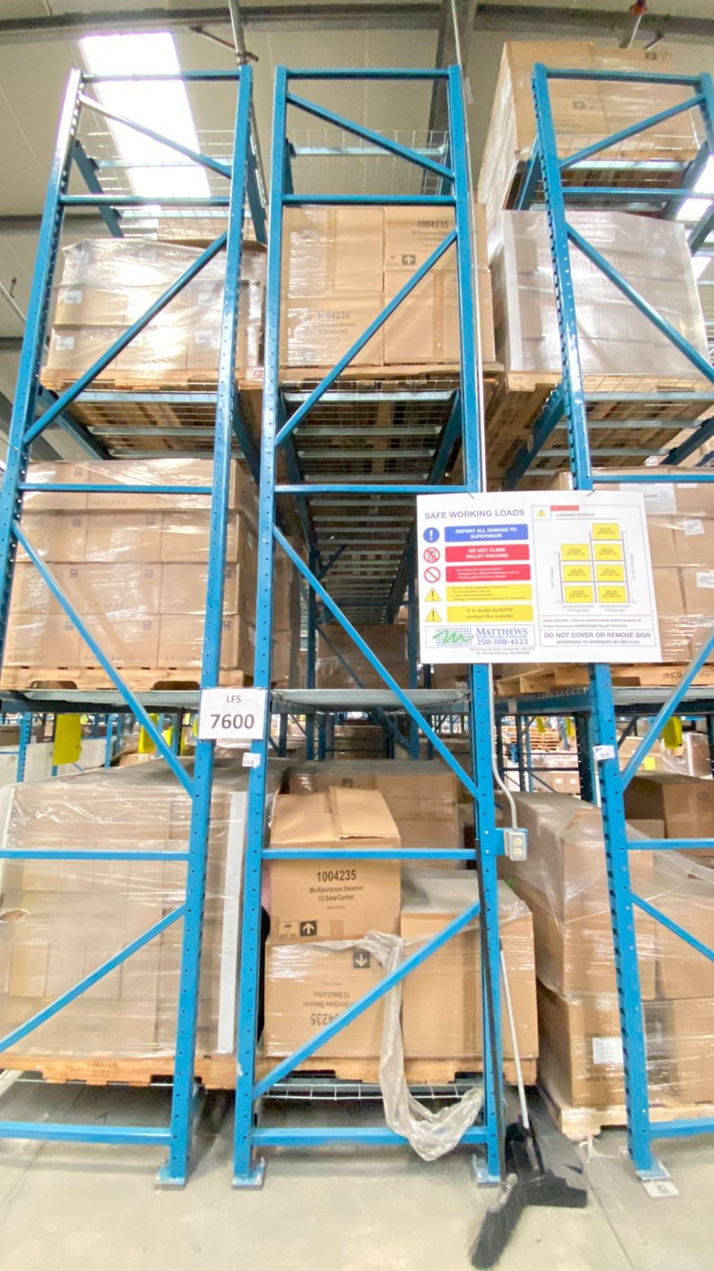 ONE ROW OF RACKING. 42" DEEP. 5 X 18' HIGH FRAMES, 9 X 12' HIGH FRAMES, 82 X 8' BEAMS. 74 X 4' SECTIONS WIRE DECKING. NO CONTENTS. *DISMANTLING AND REMOVAL OF ALL RACKING WILL BE SCHEDULED AFTER THE AUCTION WITH THE BUYERS; REMOVAL PROCESS TO START JUNE 15*