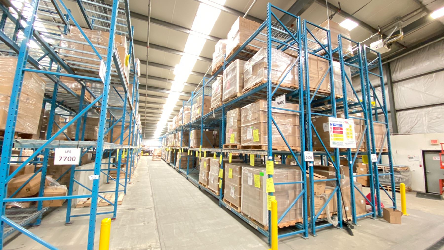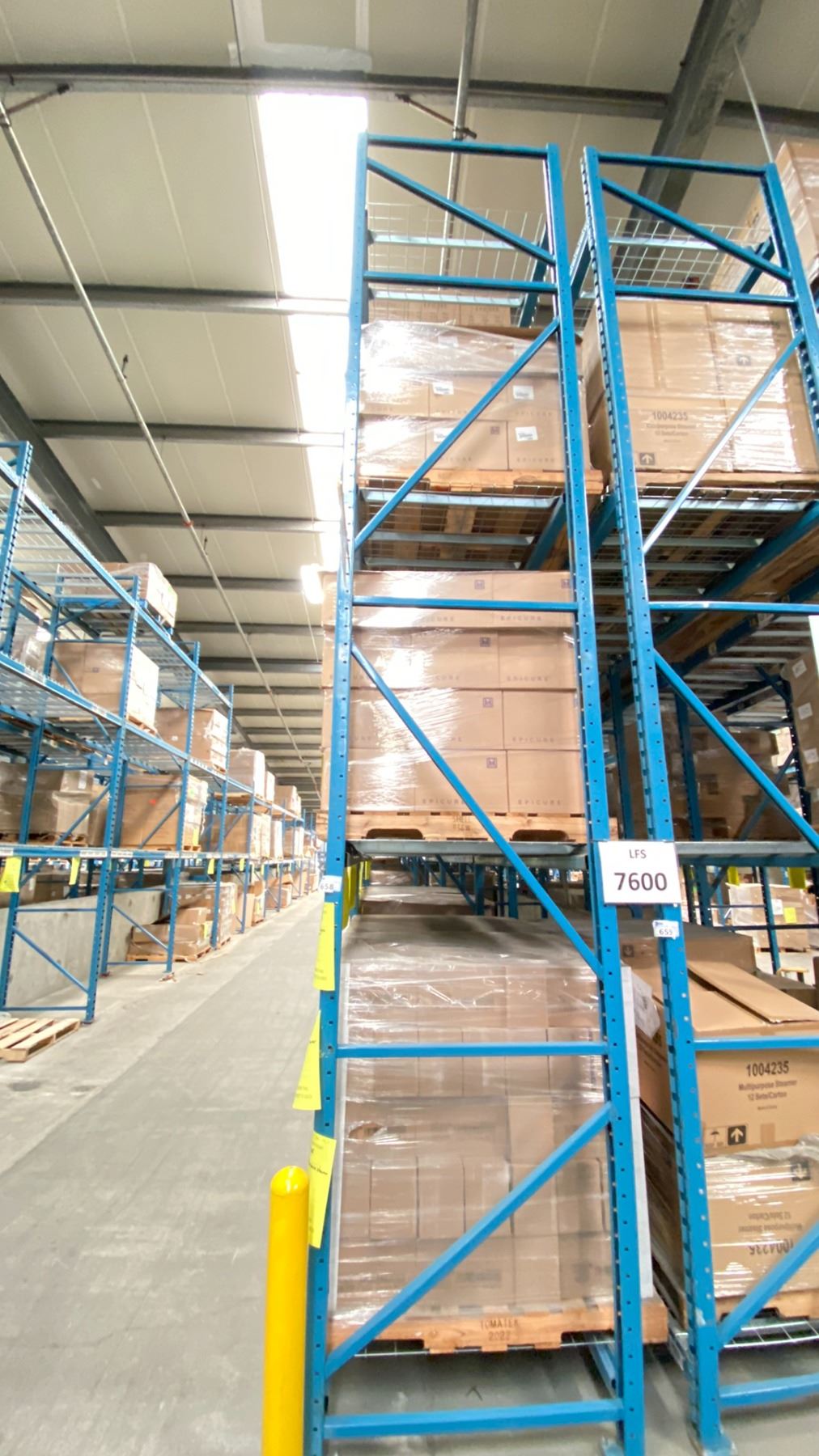 ONE ROW OF RACKING. 42" DEEP. 5 X 18' HIGH FRAMES, 9 X 12' HIGH FRAMES, 82 X 8' BEAMS. 80 X 4' SECTIONS WIRE DECKING. NO CONTENTS. *DISMANTLING AND REMOVAL OF ALL RACKING WILL BE SCHEDULED AFTER THE AUCTION WITH THE BUYERS; REMOVAL PROCESS TO START JUNE 15*