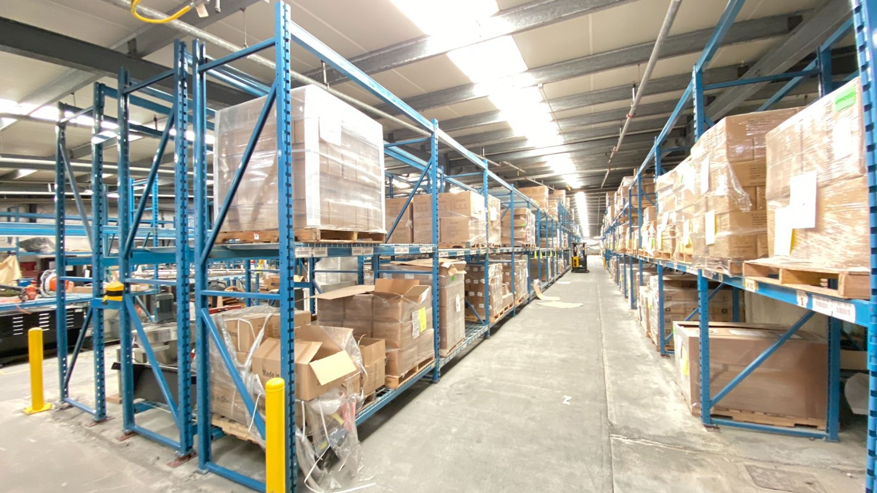 ONE ROW OF RACKING. 42" DEEP. 5 X 18' HIGH FRAMES, 9 X 12' HIGH FRAMES, 86 X 8' BEAMS. 80 X 4' SECTIONS WIRE DECKING. NO CONTENTS. *DISMANTLING AND REMOVAL OF ALL RACKING WILL BE SCHEDULED AFTER THE AUCTION WITH THE BUYERS; REMOVAL PROCESS TO START JUNE 15*
