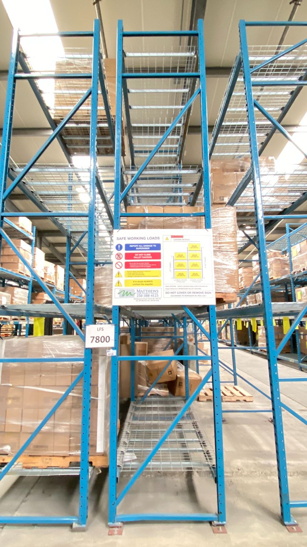 ONE ROW OF RACKING. 42" DEEP. 5 X 18' HIGH FRAMES, 9 X 12' HIGH FRAMES, 86 X 8' BEAMS. 80 X 4' SECTIONS WIRE DECKING. NO CONTENTS. *DISMANTLING AND REMOVAL OF ALL RACKING WILL BE SCHEDULED AFTER THE AUCTION WITH THE BUYERS; REMOVAL PROCESS TO START JUNE 15*