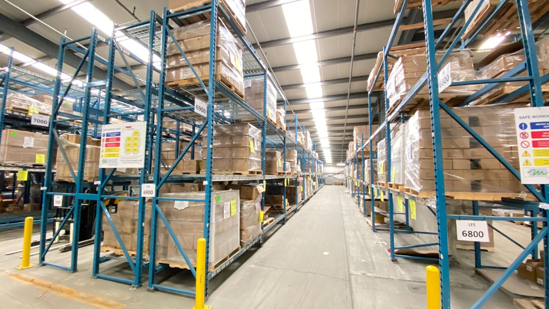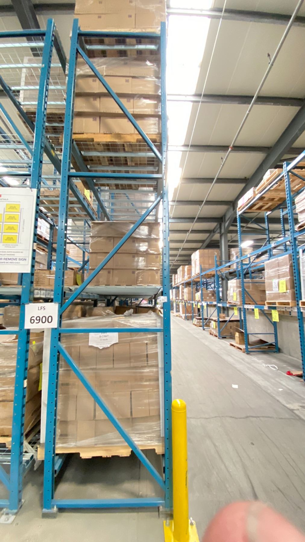 ONE ROW OF RACKING. 42" DEEP. 8 X 18' HIGH FRAMES, 5 X 12' HIGH FRAMES, 74 X 8' BEAMS, 5 X 4' SECTIONS WIRE DECKING. NO CONTENTS. *DISMANTLING AND REMOVAL OF ALL RACKING WILL BE SCHEDULED AFTER THE AUCTION WITH THE BUYERS; REMOVAL PROCESS TO START JUNE 15*