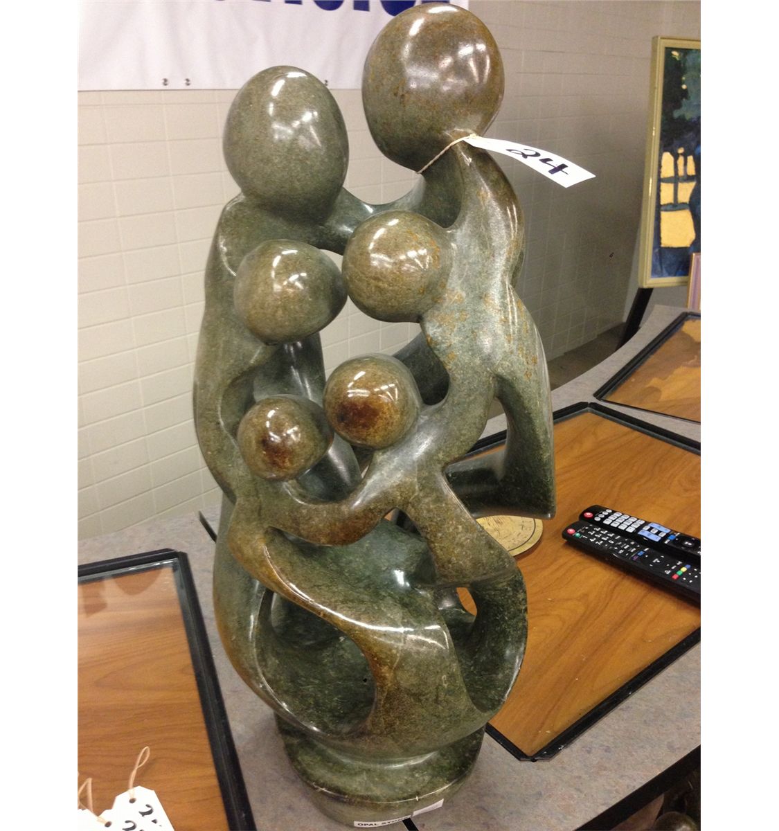 OPAL STONE HAND CARVED "FAMILY OF 6 GATHERING" STATUE, FROM ZIMBABWE. 24" TALL