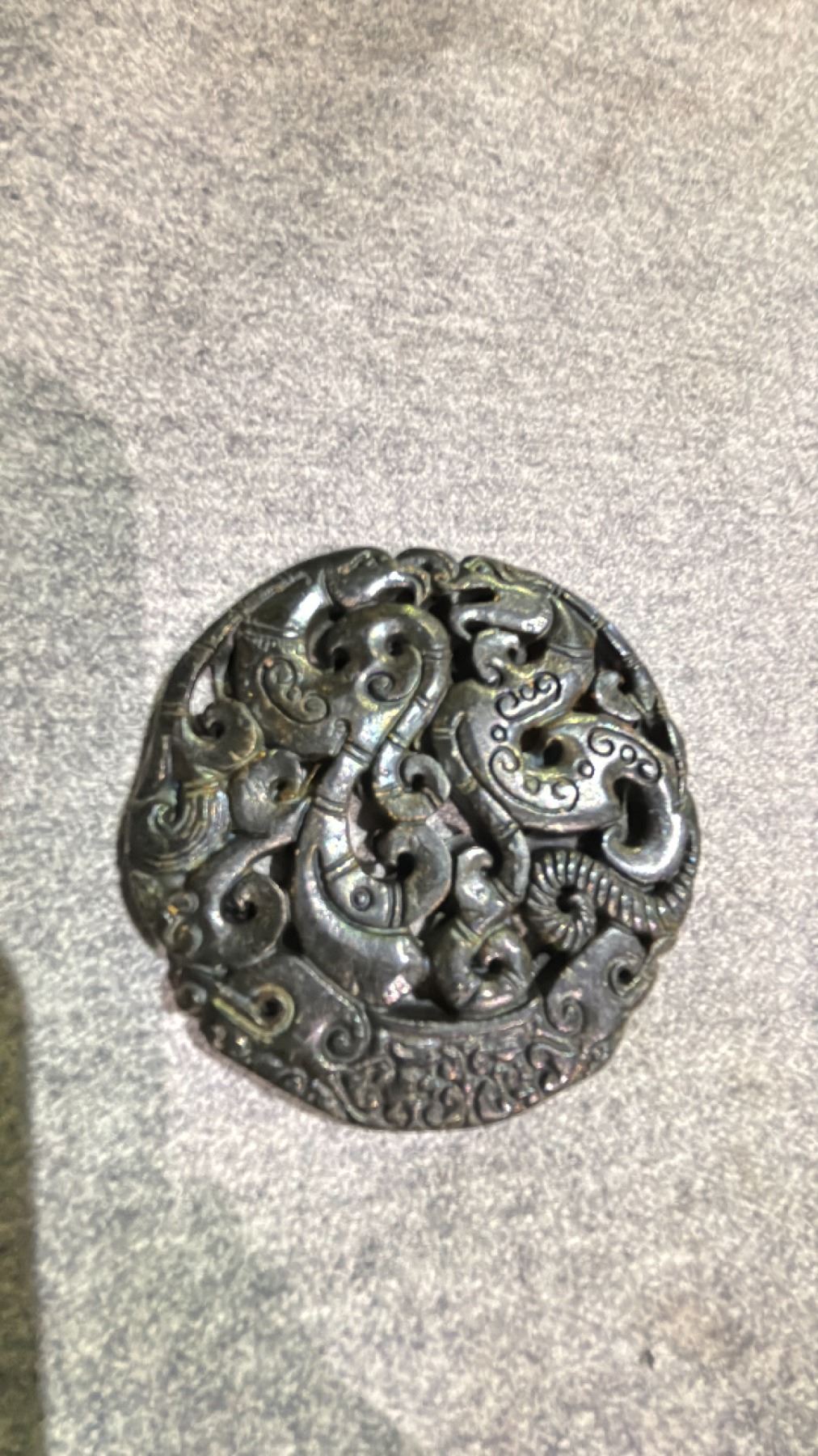 OPENWORK MOTTLED GREEN JADE STONE PLAQUE APPROX 3"